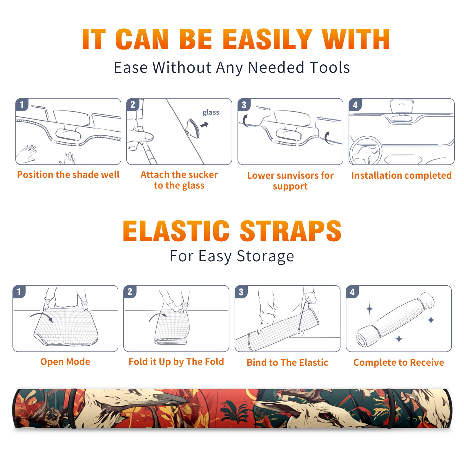 • </b>ZXIVGOQFR Foldable Premium Car Windshield Sunshade is your great solution to reduce your car’s interior temperature dramatically! This is definitely a must-have item for your summer travel! </b> <br> </b>Size: 63"L x 33.5"W </b> <br> </b>Blocking Uv Rays & Heat Insulation</b><br> Our vehicle sunshade provides effective UV, sun, and summer heat protection .Maintains dashboards by preventing fading and cracking <br> </b>Easy-To-Store Folding Design Makes Storage Convenient </b><br> ZXIVGOQFR car sunshades come with removable suction cups and elastic bands that you can install easily and quickly, and the removable suction cups will not leave any marks on your windows when removed. Within seconds, windshield visor can be installed and removed. When not in use,the front windshield can be easily and effectively placed on the door pocket or the dashboard, which is beautiful and does not take up space in the car.<br> <br> </b>PUT UP A 'PROTECTIVE UMBRELLA' FOR YOUR BELOVED CAR!</b>