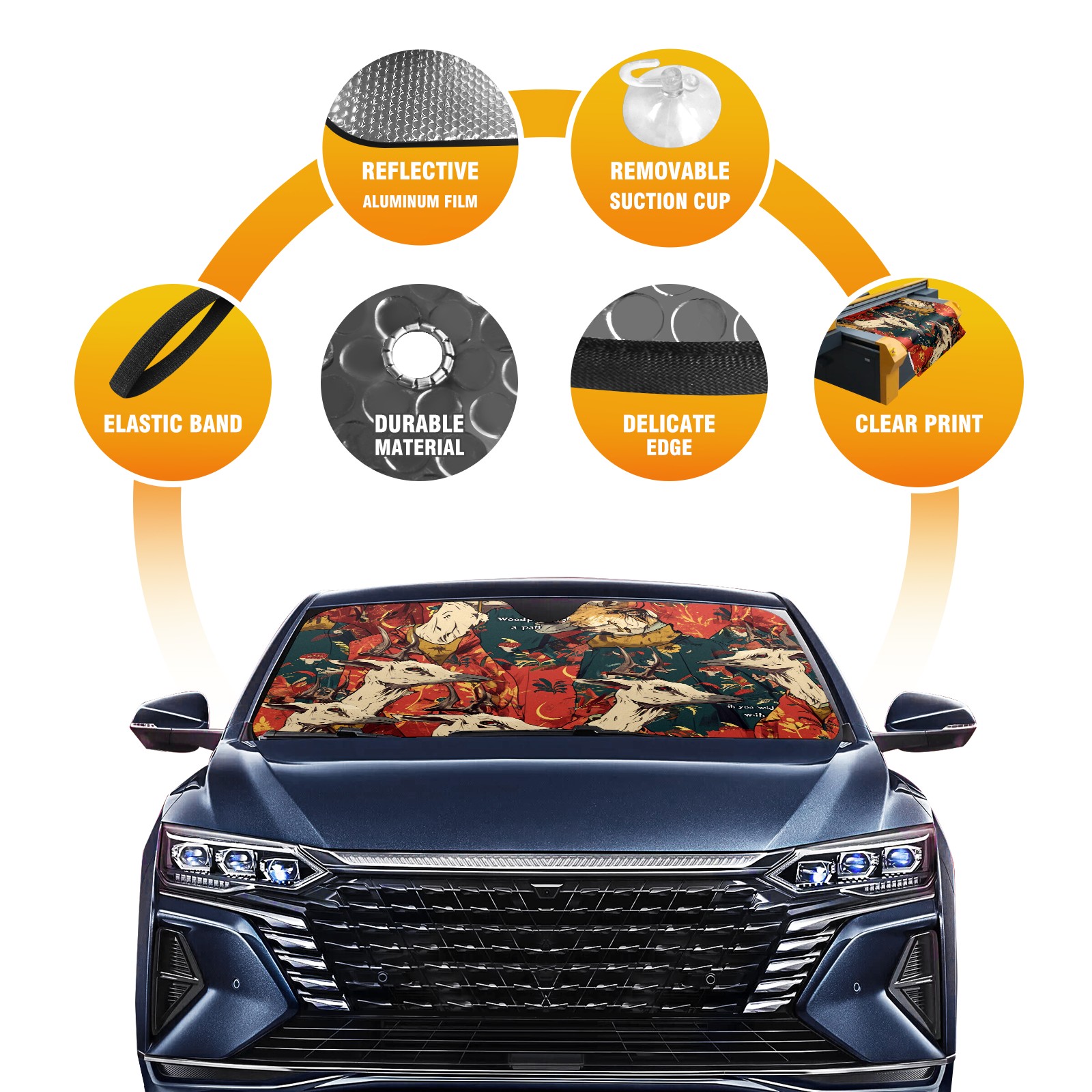 </b>ZXIVGOQFR Foldable Premium Car Windshield Sunshade is your great solution to reduce your car’s interior temperature dramatically! This is definitely a must-have item for your summer travel! </b> <br> </b>Size: 63"L x 33.5"W </b> <br> </b>Blocking Uv Rays & Heat Insulation</b><br> Our vehicle sunshade provides effective UV, sun, and summer heat protection .Maintains dashboards by preventing fading and cracking <br> </b>Easy-To-Store Folding Design Makes Storage Convenient </b><br> ZXIVGOQFR car sunshades come with removable suction cups and elastic bands that you can install easily and quickly, and the removable suction cups will not leave any marks on your windows when removed. Within seconds, windshield visor can be installed and removed. When not in use,the front windshield can be easily and effectively placed on the door pocket or the dashboard, which is beautiful and does not take up space in the car.<br> <br> </b>PUT UP A 'PROTECTIVE UMBRELLA' FOR YOUR BELOVED CAR!</b>