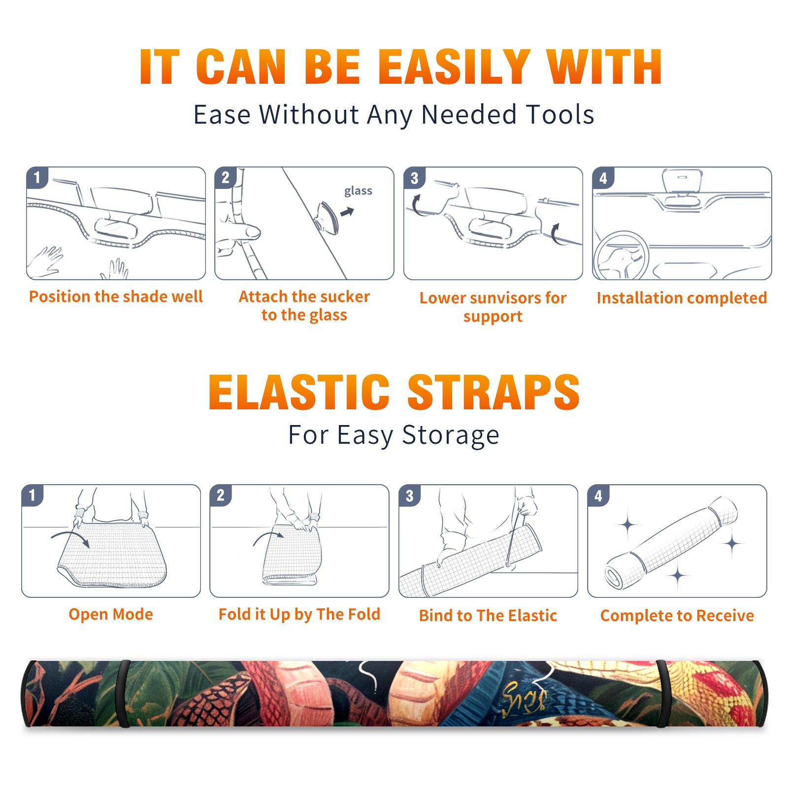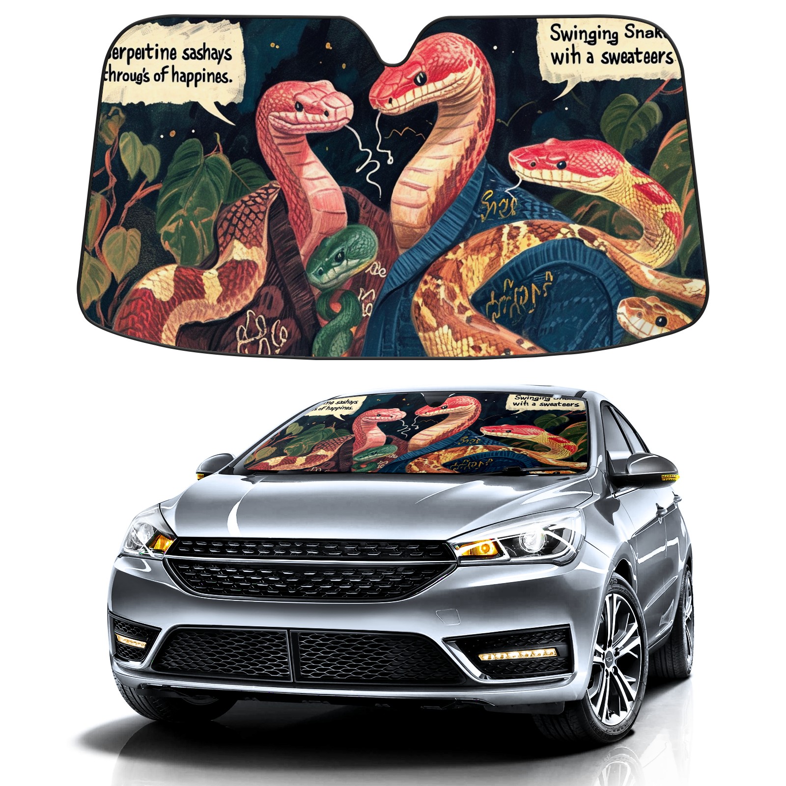 Car Windshield Sun Shade for Front Window Snake Foldable Vehicle Windshield Car Sun Visor Covers Automotive Window Protector Car Privacy Sun Blocker
