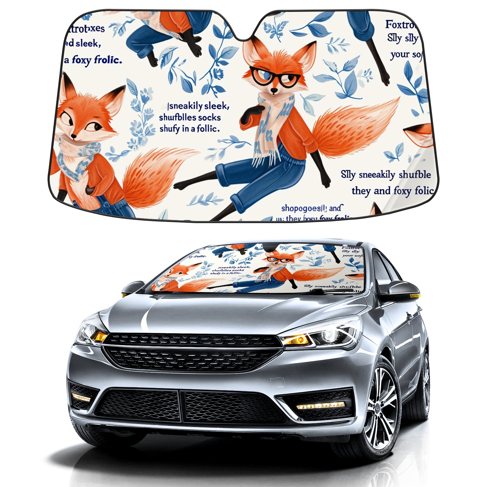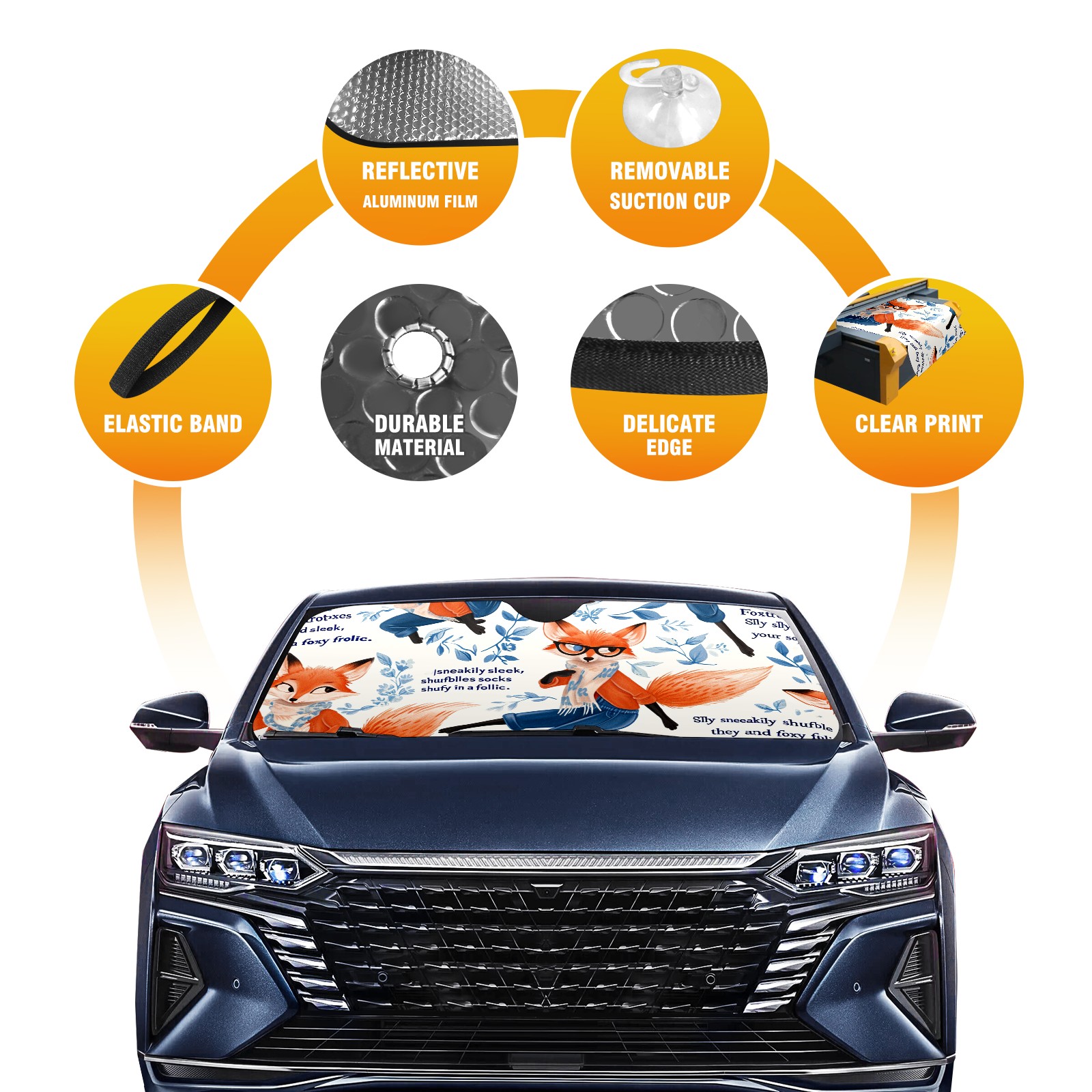 Car Windshield Sun Shade for Front Window Fox Foldable Vehicle Windshield Car Sun Visor Covers Automotive Window Protector Car Privacy Sun Blocker