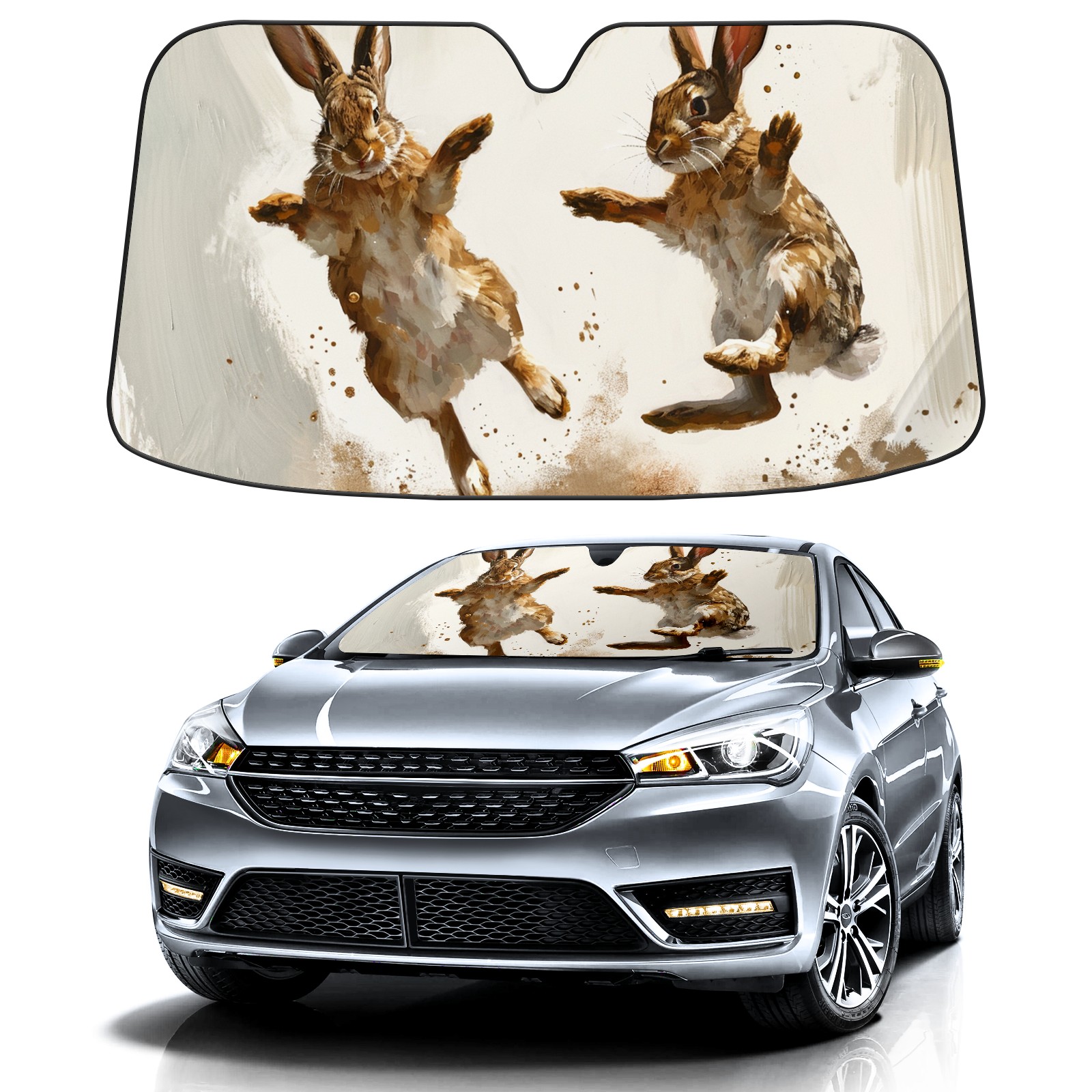 Car Windshield Sun Shade for Front Window Rabbit Foldable Vehicle Windshield Car Sun Visor Covers Automotive Window Protector Car Privacy Sun Blocker