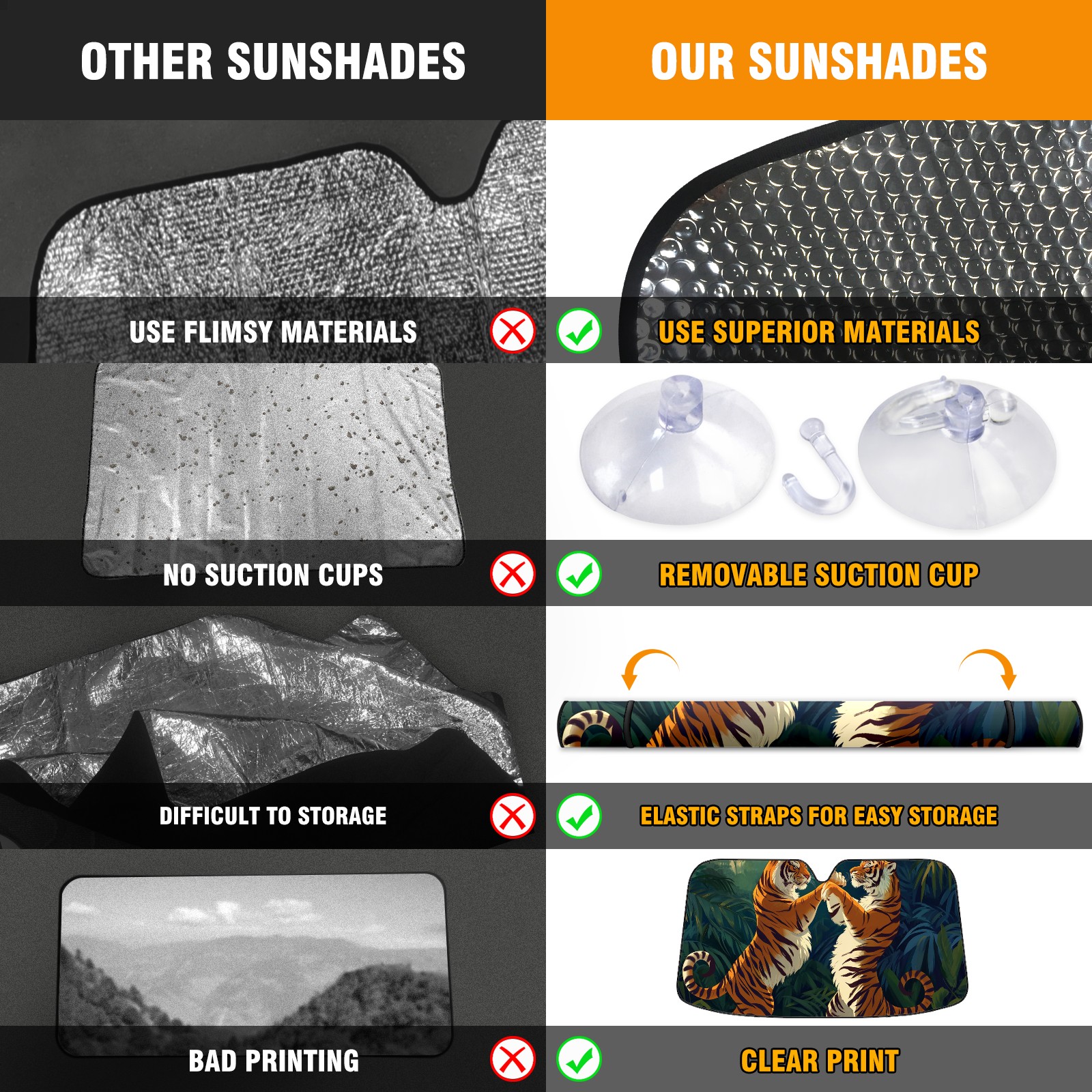 Car Windshield Sun Shade for Front Window Tiger Foldable Vehicle Windshield Car Sun Visor Covers Automotive Window Protector Car Privacy Sun Blocker