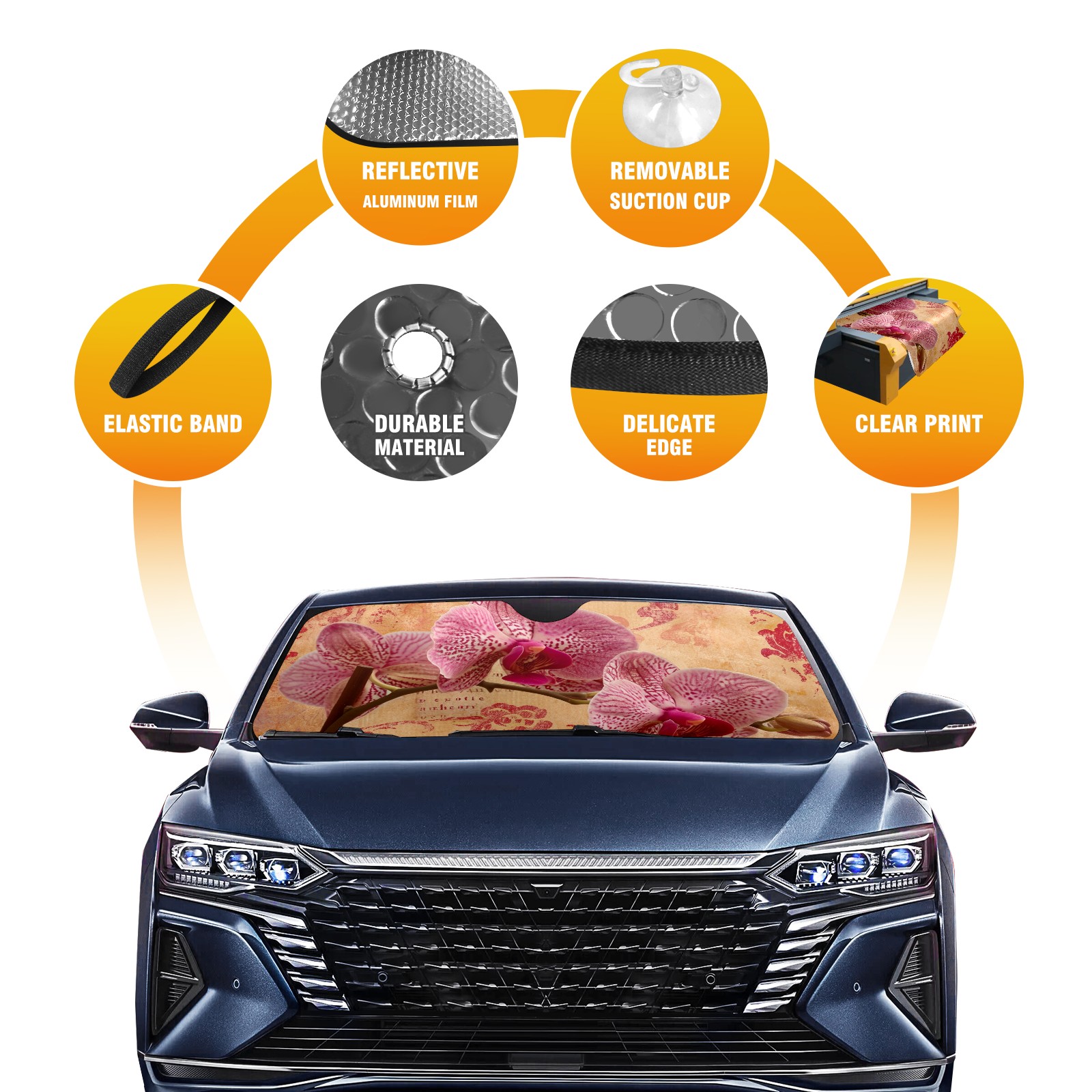 Car Windshield Sun Shade for Front Window Flower Foldable Vehicle Windshield Car Sun Visor Covers Automotive Window Protector Car Privacy Sun Blocker