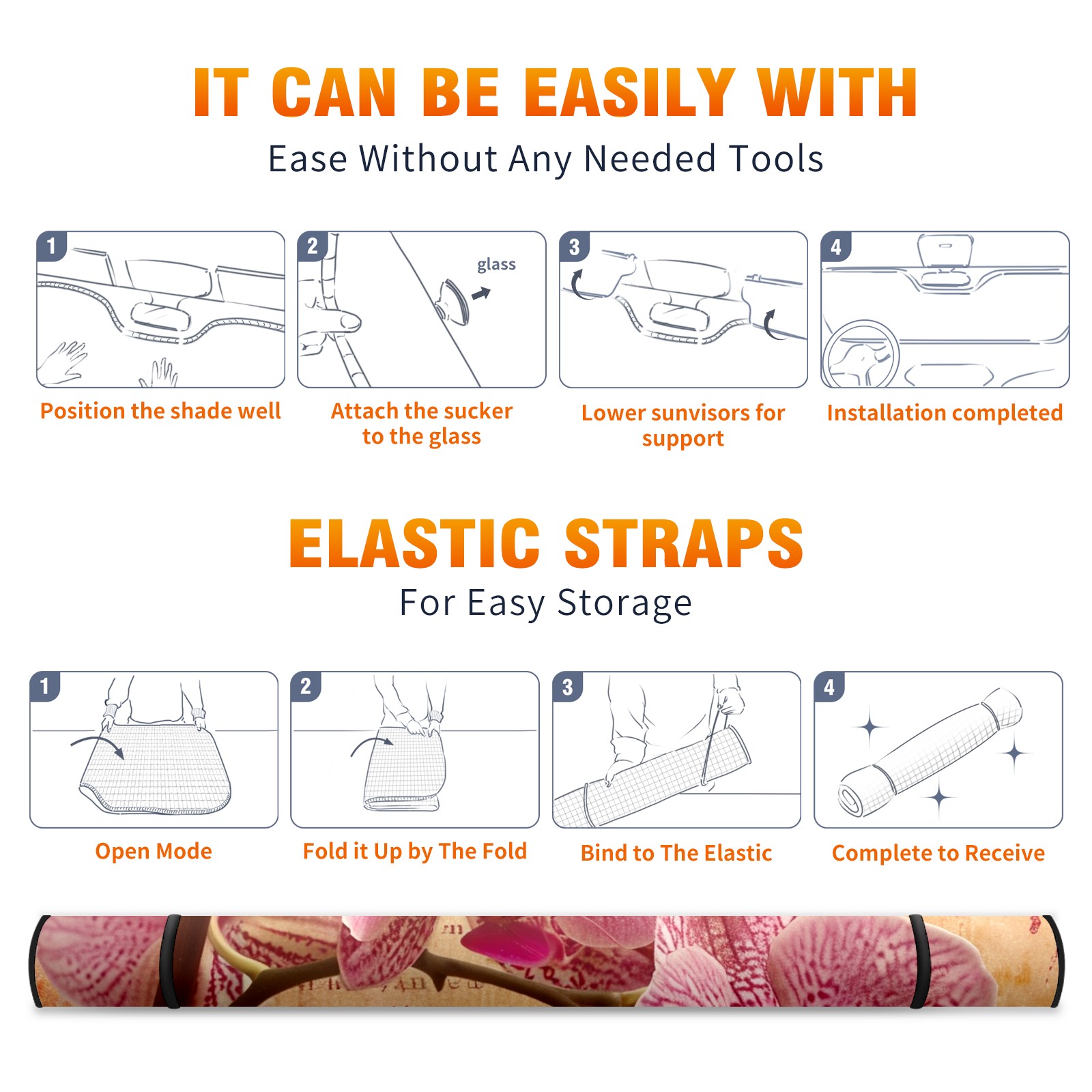 • </b>ZXIVGOQFR Foldable Premium Car Windshield Sunshade is your great solution to reduce your car’s interior temperature dramatically! This is definitely a must-have item for your summer travel! </b> <br> </b>Size: 63"L x 33.5"W </b> <br> </b>Blocking Uv Rays & Heat Insulation</b><br> Our vehicle sunshade provides effective UV, sun, and summer heat protection .Maintains dashboards by preventing fading and cracking <br> </b>Easy-To-Store Folding Design Makes Storage Convenient </b><br> ZXIVGOQFR car sunshades come with removable suction cups and elastic bands that you can install easily and quickly, and the removable suction cups will not leave any marks on your windows when removed. Within seconds, windshield visor can be installed and removed. When not in use,the front windshield can be easily and effectively placed on the door pocket or the dashboard, which is beautiful and does not take up space in the car.<br> <br> </b>PUT UP A 'PROTECTIVE UMBRELLA' FOR YOUR BELOVED CAR!</b>