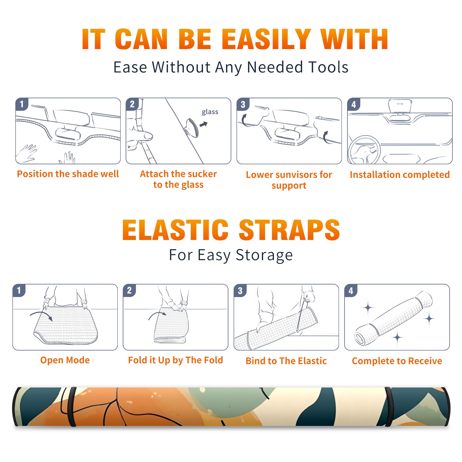 • </b>ZXIVGOQFR Foldable Premium Car Windshield Sunshade is your great solution to reduce your car’s interior temperature dramatically! This is definitely a must-have item for your summer travel! </b> <br> </b>Size: 63"L x 33.5"W </b> <br> </b>Blocking Uv Rays & Heat Insulation</b><br> Our vehicle sunshade provides effective UV, sun, and summer heat protection .Maintains dashboards by preventing fading and cracking <br> </b>Easy-To-Store Folding Design Makes Storage Convenient </b><br> ZXIVGOQFR car sunshades come with removable suction cups and elastic bands that you can install easily and quickly, and the removable suction cups will not leave any marks on your windows when removed. Within seconds, windshield visor can be installed and removed. When not in use,the front windshield can be easily and effectively placed on the door pocket or the dashboard, which is beautiful and does not take up space in the car.<br> <br> </b>PUT UP A 'PROTECTIVE UMBRELLA' FOR YOUR BELOVED CAR!</b>