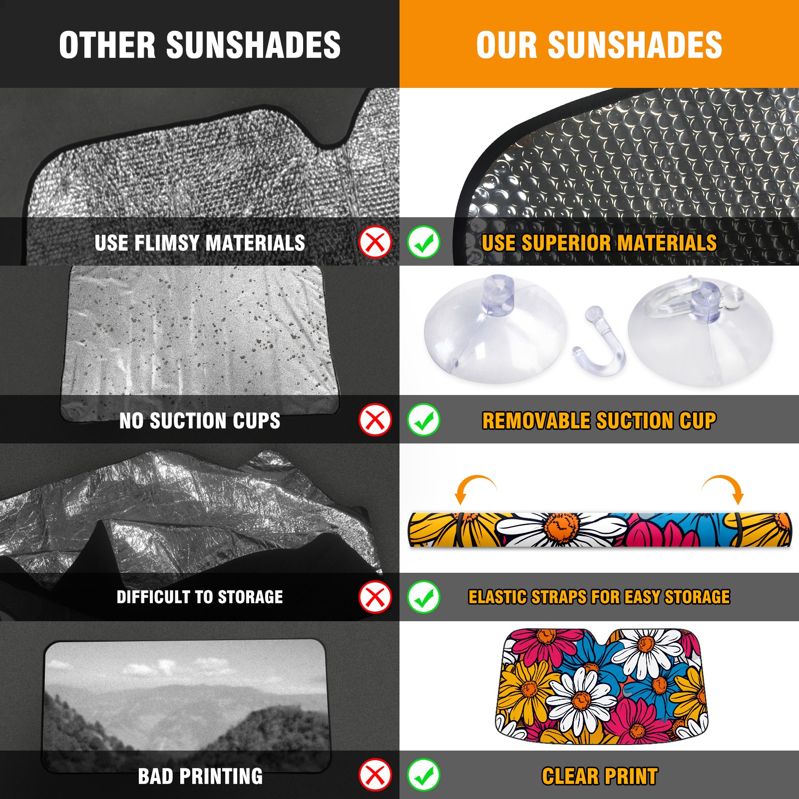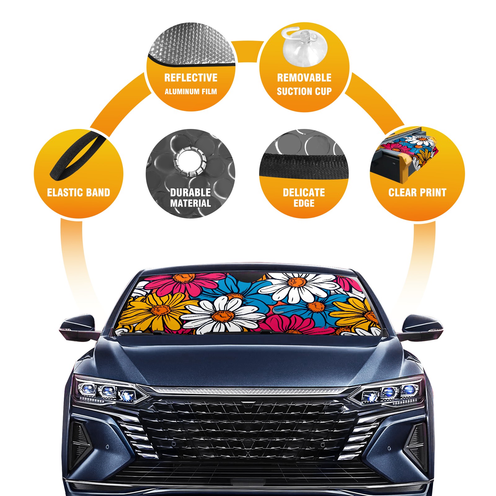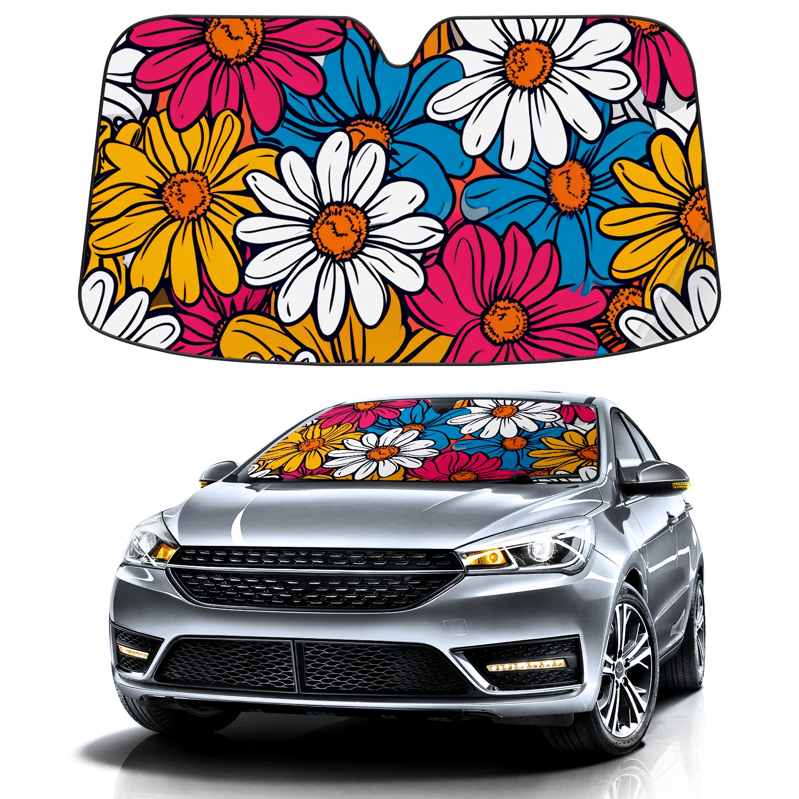 Car Windshield Sun Shade for Front Window Daisy Flower Foldable Vehicle Windshield Car Sun Visor Covers Automotive Window Protector Car Privacy Sun Blocker