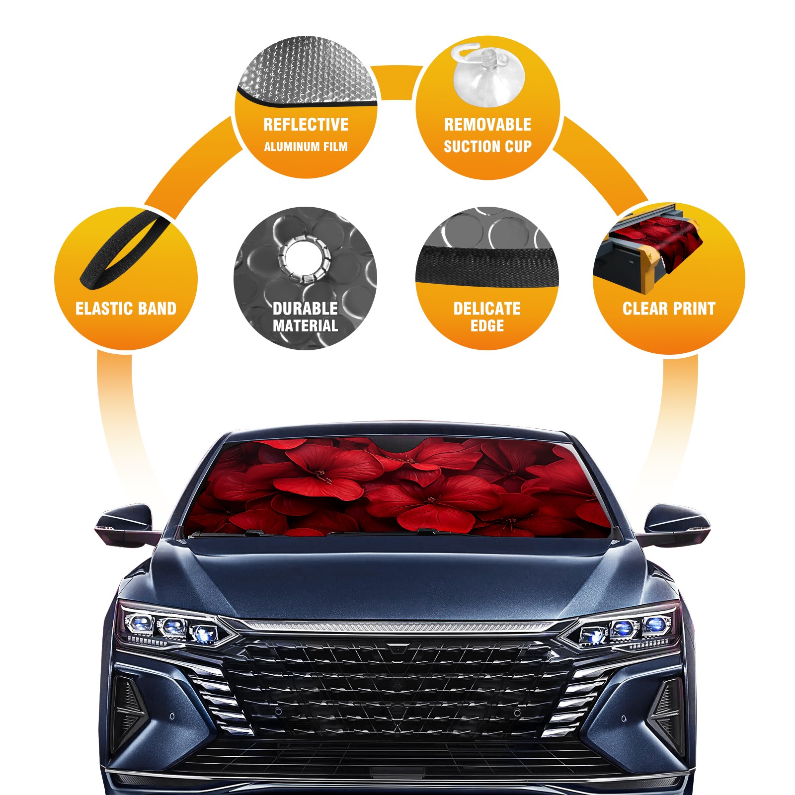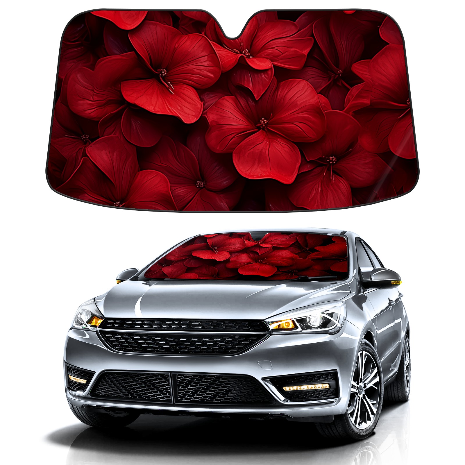 </b>ZXIVGOQFR Foldable Premium Car Windshield Sunshade is your great solution to reduce your car’s interior temperature dramatically! This is definitely a must-have item for your summer travel! </b> <br> </b>Size: 63"L x 33.5"W </b> <br> </b>Blocking Uv Rays & Heat Insulation</b><br> Our vehicle sunshade provides effective UV, sun, and summer heat protection .Maintains dashboards by preventing fading and cracking <br> </b>Easy-To-Store Folding Design Makes Storage Convenient </b><br> ZXIVGOQFR car sunshades come with removable suction cups and elastic bands that you can install easily and quickly, and the removable suction cups will not leave any marks on your windows when removed. Within seconds, windshield visor can be installed and removed. When not in use,the front windshield can be easily and effectively placed on the door pocket or the dashboard, which is beautiful and does not take up space in the car.<br> <br> </b>PUT UP A 'PROTECTIVE UMBRELLA' FOR YOUR BELOVED CAR!</b>