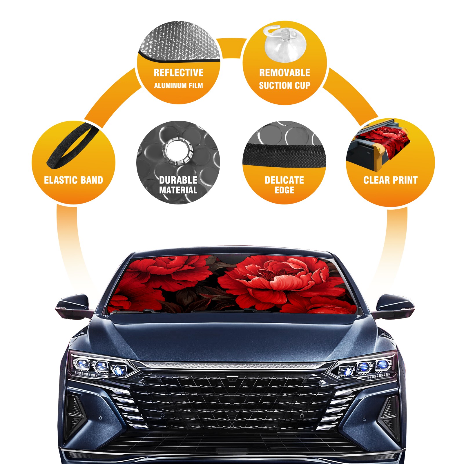 </b>ZXIVGOQFR Foldable Premium Car Windshield Sunshade is your great solution to reduce your car’s interior temperature dramatically! This is definitely a must-have item for your summer travel! </b> <br> </b>Size: 63"L x 33.5"W </b> <br> </b>Blocking Uv Rays & Heat Insulation</b><br> Our vehicle sunshade provides effective UV, sun, and summer heat protection .Maintains dashboards by preventing fading and cracking <br> </b>Easy-To-Store Folding Design Makes Storage Convenient </b><br> ZXIVGOQFR car sunshades come with removable suction cups and elastic bands that you can install easily and quickly, and the removable suction cups will not leave any marks on your windows when removed. Within seconds, windshield visor can be installed and removed. When not in use,the front windshield can be easily and effectively placed on the door pocket or the dashboard, which is beautiful and does not take up space in the car.<br> <br> </b>PUT UP A 'PROTECTIVE UMBRELLA' FOR YOUR BELOVED CAR!</b>