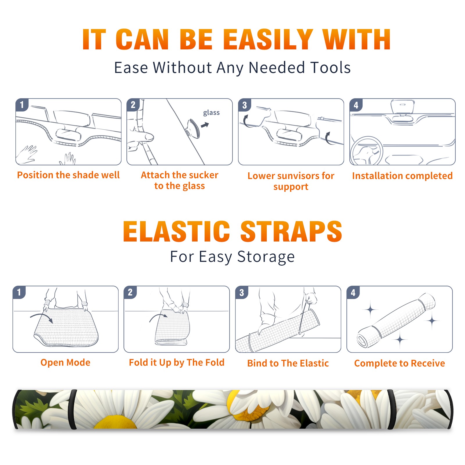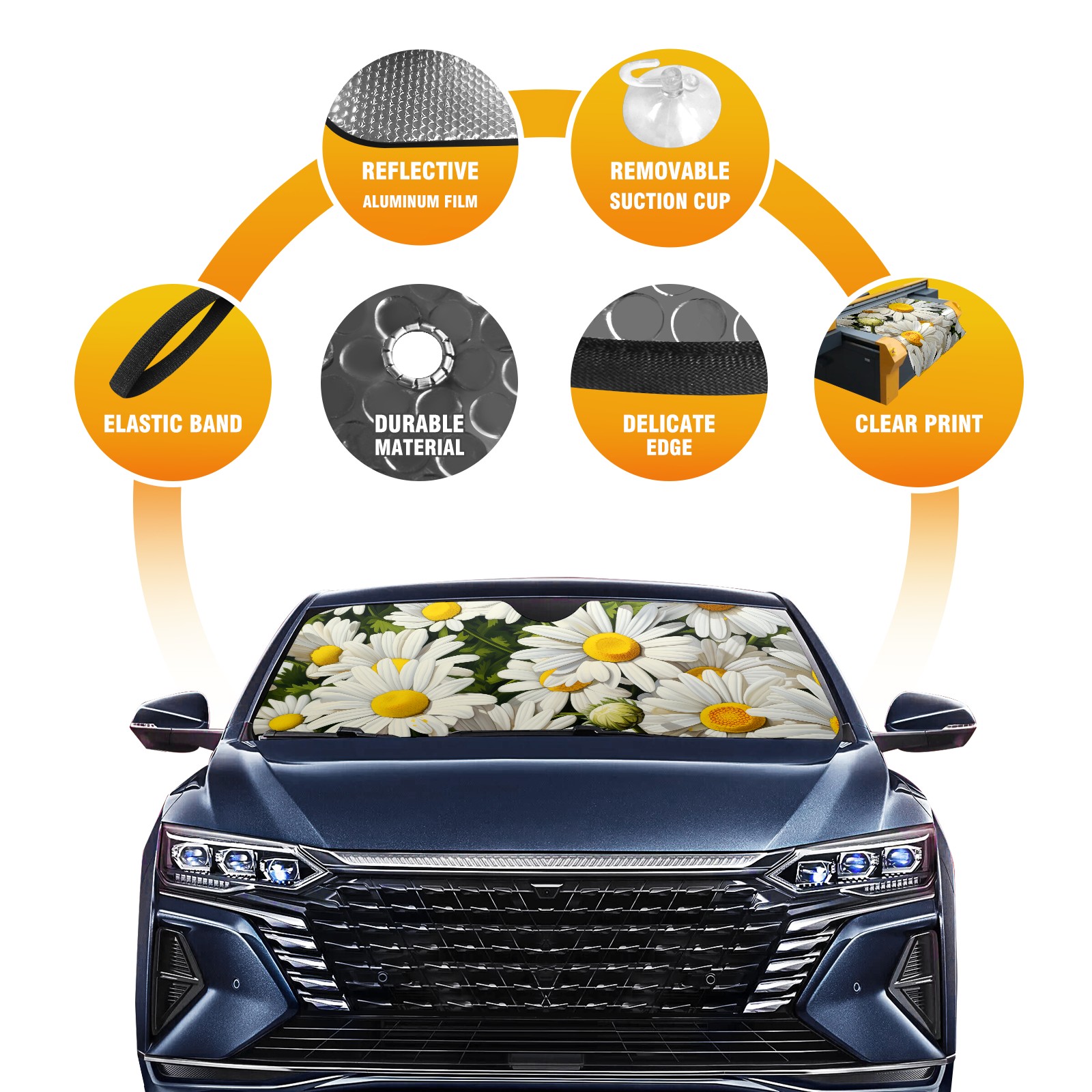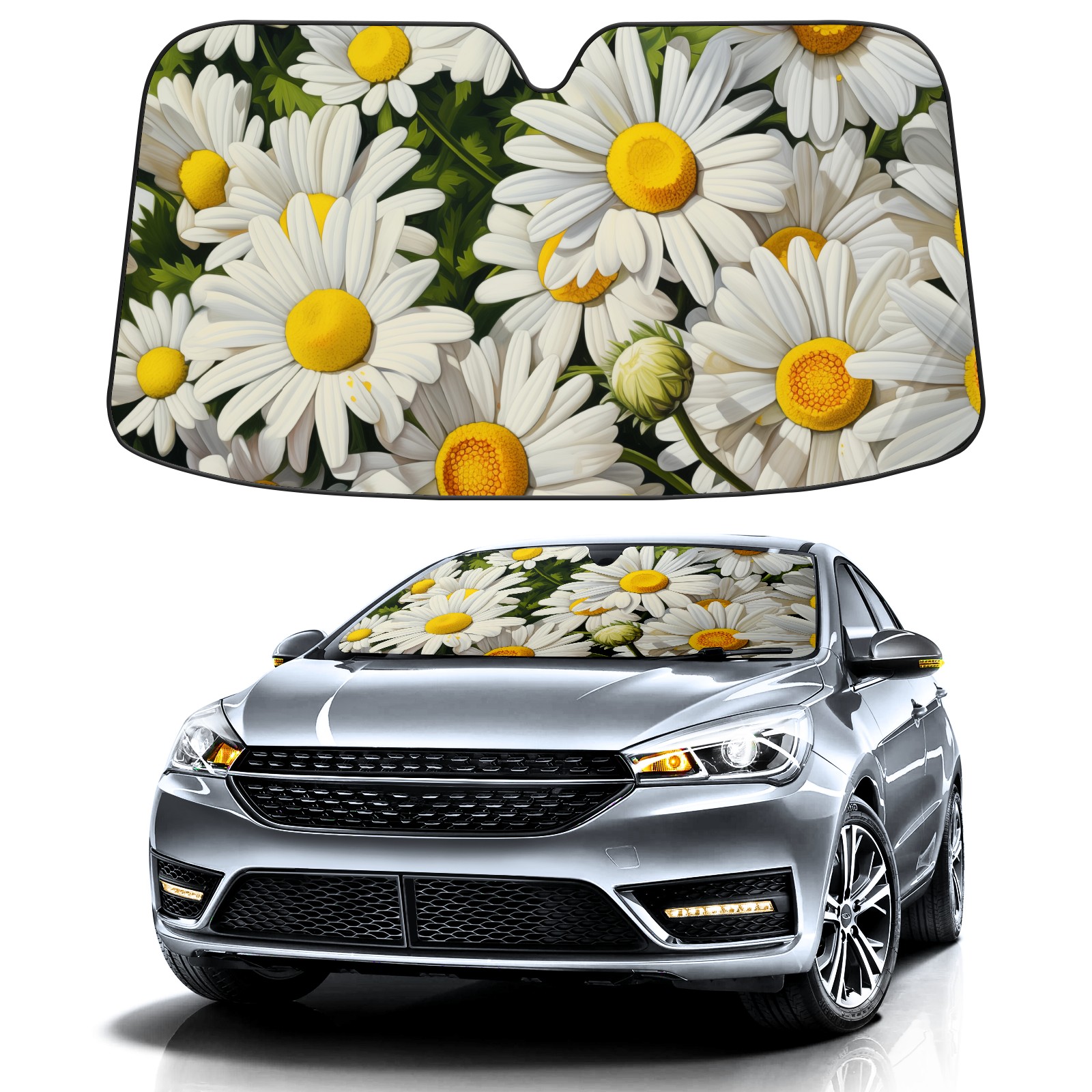 Car Windshield Sun Shade for Front Window Matricaria Recutita Foldable Vehicle Windshield Car Sun Visor Covers Automotive Window Protector Car Privacy Sun Blocker