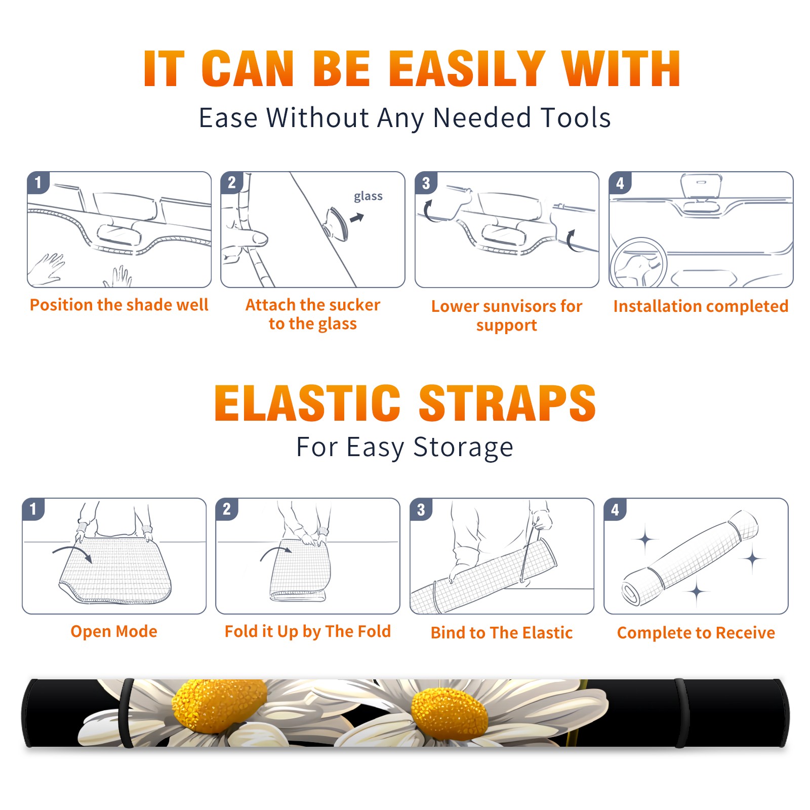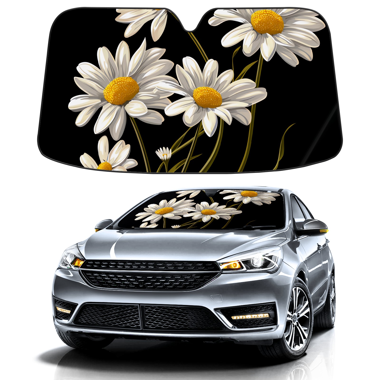 Car Windshield Sun Shade for Front Window White Chamomile C Foldable Vehicle Windshield Car Sun Visor Covers Automotive Window Protector Car Privacy Sun Blocker