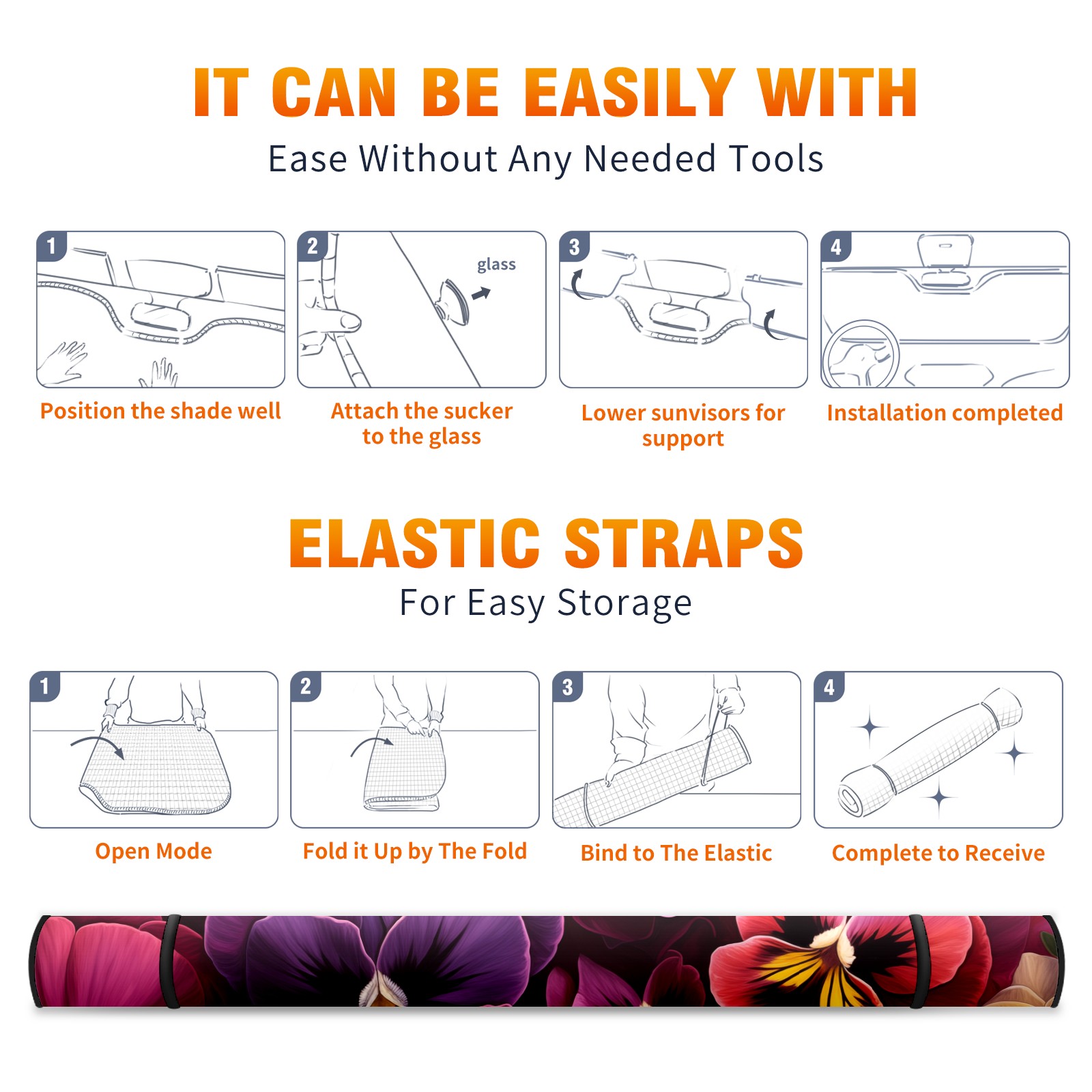 • </b>ZXIVGOQFR Foldable Premium Car Windshield Sunshade is your great solution to reduce your car’s interior temperature dramatically! This is definitely a must-have item for your summer travel! </b> <br> </b>Size: 63"L x 33.5"W </b> <br> </b>Blocking Uv Rays & Heat Insulation</b><br> Our vehicle sunshade provides effective UV, sun, and summer heat protection .Maintains dashboards by preventing fading and cracking <br> </b>Easy-To-Store Folding Design Makes Storage Convenient </b><br> ZXIVGOQFR car sunshades come with removable suction cups and elastic bands that you can install easily and quickly, and the removable suction cups will not leave any marks on your windows when removed. Within seconds, windshield visor can be installed and removed. When not in use,the front windshield can be easily and effectively placed on the door pocket or the dashboard, which is beautiful and does not take up space in the car.<br> <br> </b>PUT UP A 'PROTECTIVE UMBRELLA' FOR YOUR BELOVED CAR!</b>