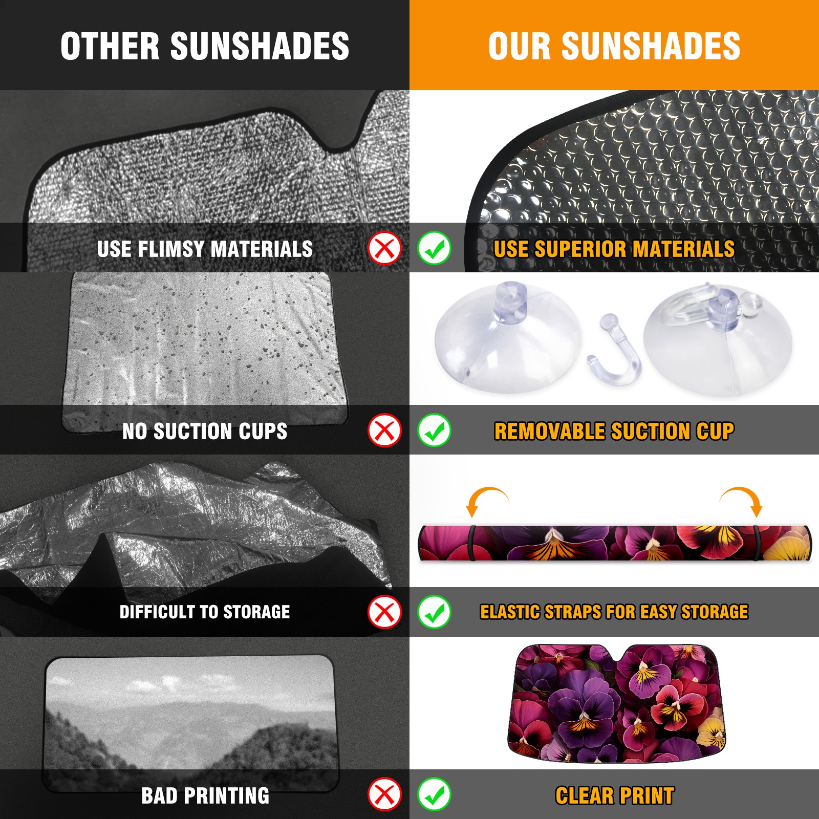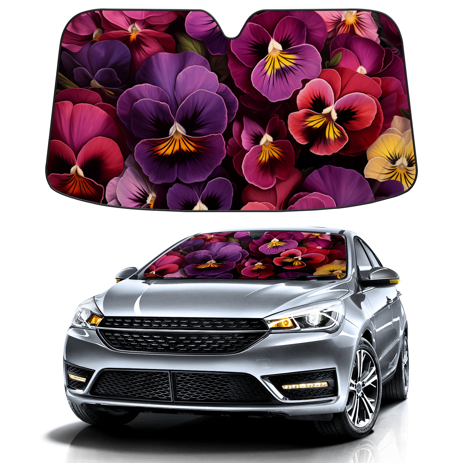 Car Windshield Sun Shade for Front Window Nice Pansies Foldable Vehicle Windshield Car Sun Visor Covers Automotive Window Protector Car Privacy Sun Blocker