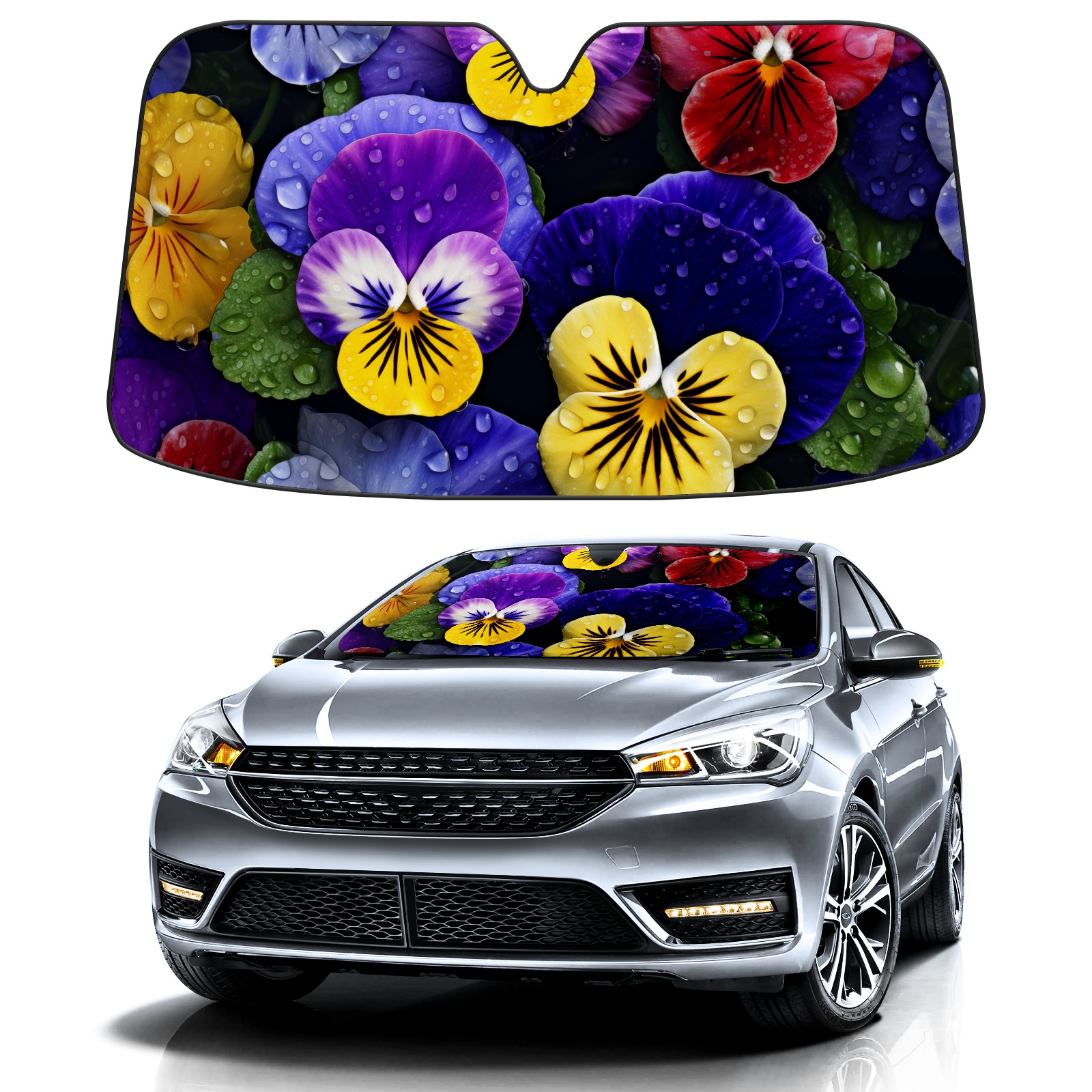 Car Windshield Sun Shade for Front Window Colored Pansy Foldable Vehicle Windshield Car Sun Visor Covers Automotive Window Protector Car Privacy Sun Blocker
