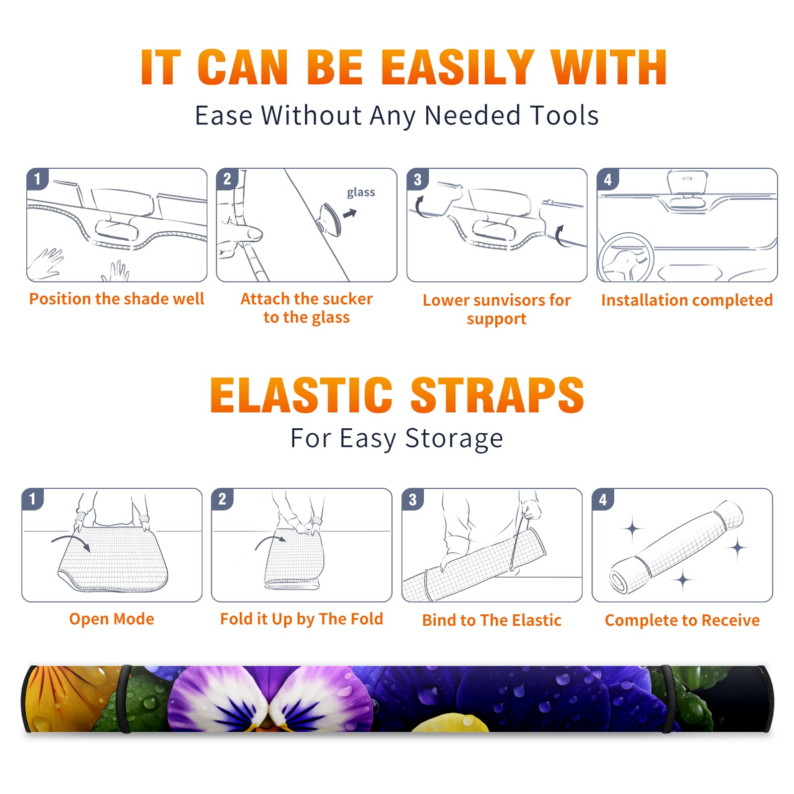 • </b>ZXIVGOQFR Foldable Premium Car Windshield Sunshade is your great solution to reduce your car’s interior temperature dramatically! This is definitely a must-have item for your summer travel! </b> <br> </b>Size: 63"L x 33.5"W </b> <br> </b>Blocking Uv Rays & Heat Insulation</b><br> Our vehicle sunshade provides effective UV, sun, and summer heat protection .Maintains dashboards by preventing fading and cracking <br> </b>Easy-To-Store Folding Design Makes Storage Convenient </b><br> ZXIVGOQFR car sunshades come with removable suction cups and elastic bands that you can install easily and quickly, and the removable suction cups will not leave any marks on your windows when removed. Within seconds, windshield visor can be installed and removed. When not in use,the front windshield can be easily and effectively placed on the door pocket or the dashboard, which is beautiful and does not take up space in the car.<br> <br> </b>PUT UP A 'PROTECTIVE UMBRELLA' FOR YOUR BELOVED CAR!</b>