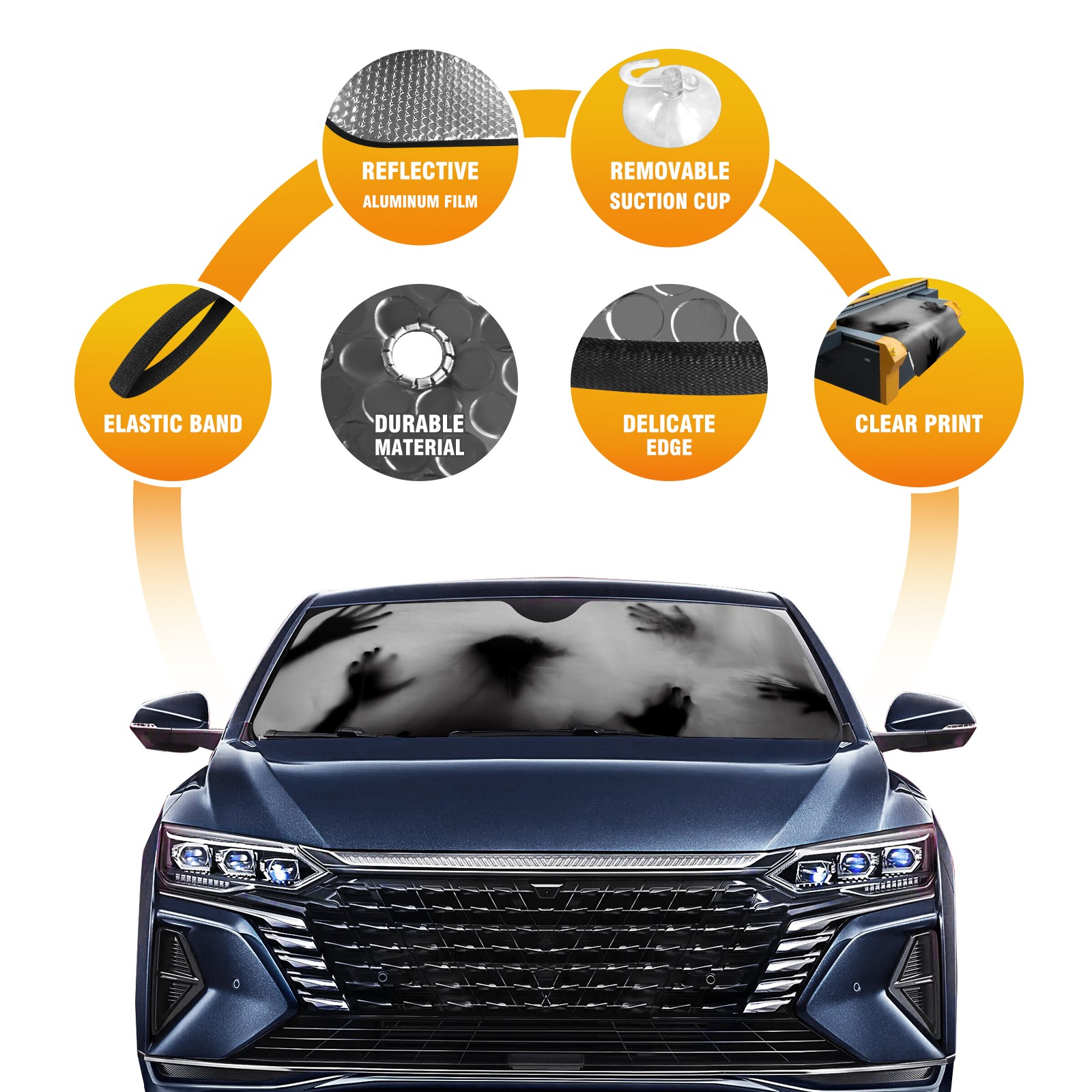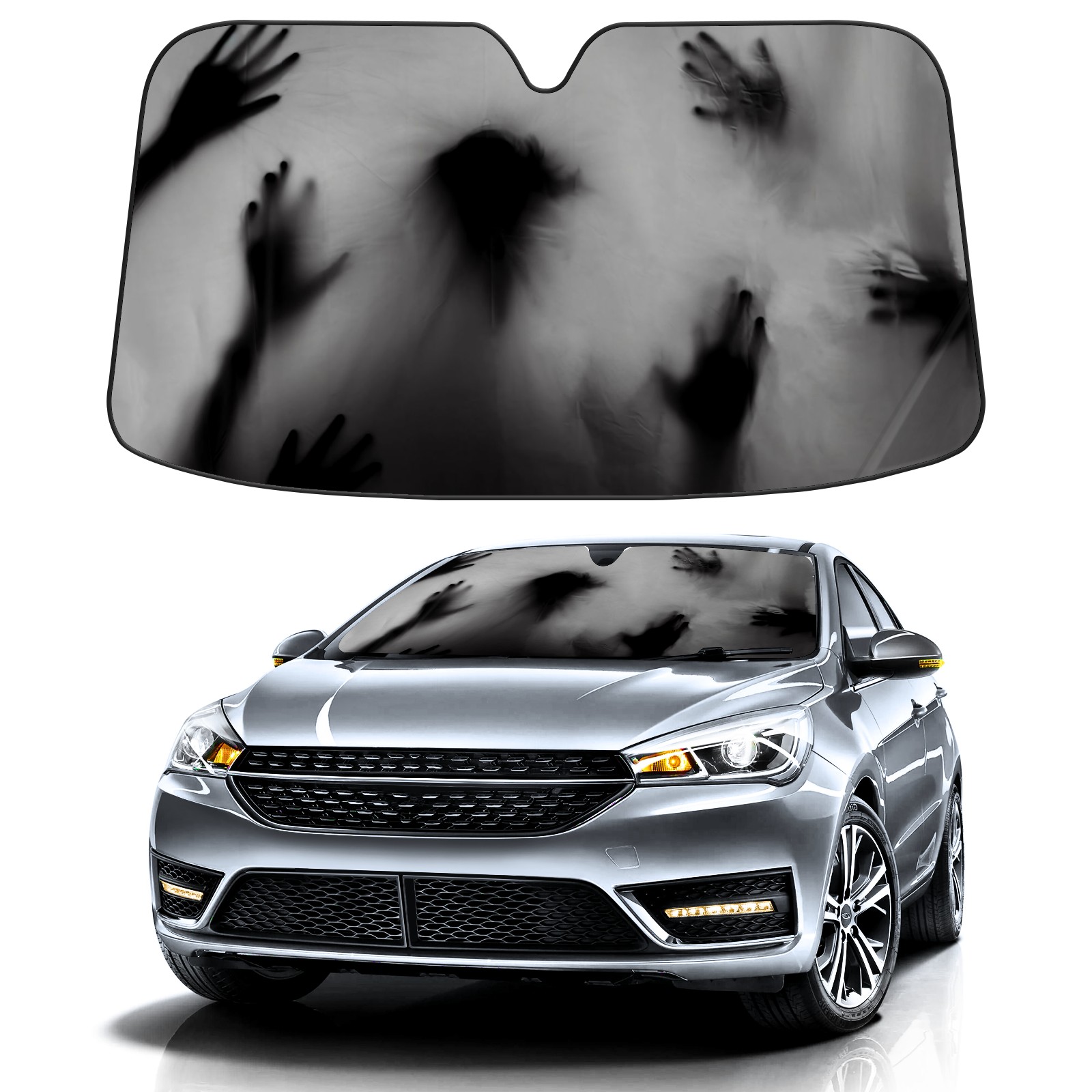 Car Windshield Sun Shade for Front Window Ghost Hand Silhouette Horror Halloween 1 (1) Foldable Vehicle Windshield Car Sun Visor Covers Automotive Window Protector Car Privacy Sun Blocker