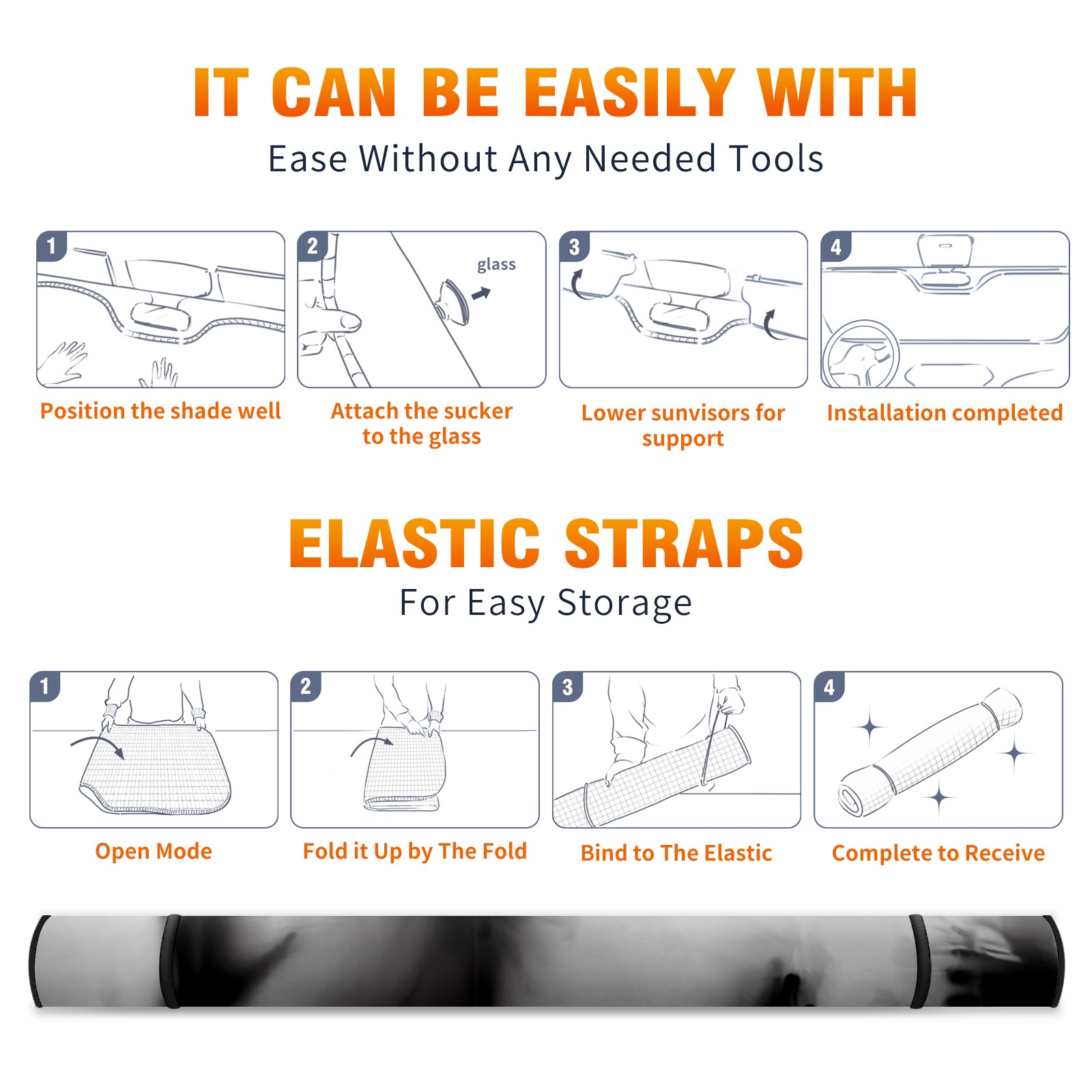 • </b>ZXIVGOQFR Foldable Premium Car Windshield Sunshade is your great solution to reduce your car’s interior temperature dramatically! This is definitely a must-have item for your summer travel! </b> <br> </b>Size: 63"L x 33.5"W </b> <br> </b>Blocking Uv Rays & Heat Insulation</b><br> Our vehicle sunshade provides effective UV, sun, and summer heat protection .Maintains dashboards by preventing fading and cracking <br> </b>Easy-To-Store Folding Design Makes Storage Convenient </b><br> ZXIVGOQFR car sunshades come with removable suction cups and elastic bands that you can install easily and quickly, and the removable suction cups will not leave any marks on your windows when removed. Within seconds, windshield visor can be installed and removed. When not in use,the front windshield can be easily and effectively placed on the door pocket or the dashboard, which is beautiful and does not take up space in the car.<br> <br> </b>PUT UP A 'PROTECTIVE UMBRELLA' FOR YOUR BELOVED CAR!</b>