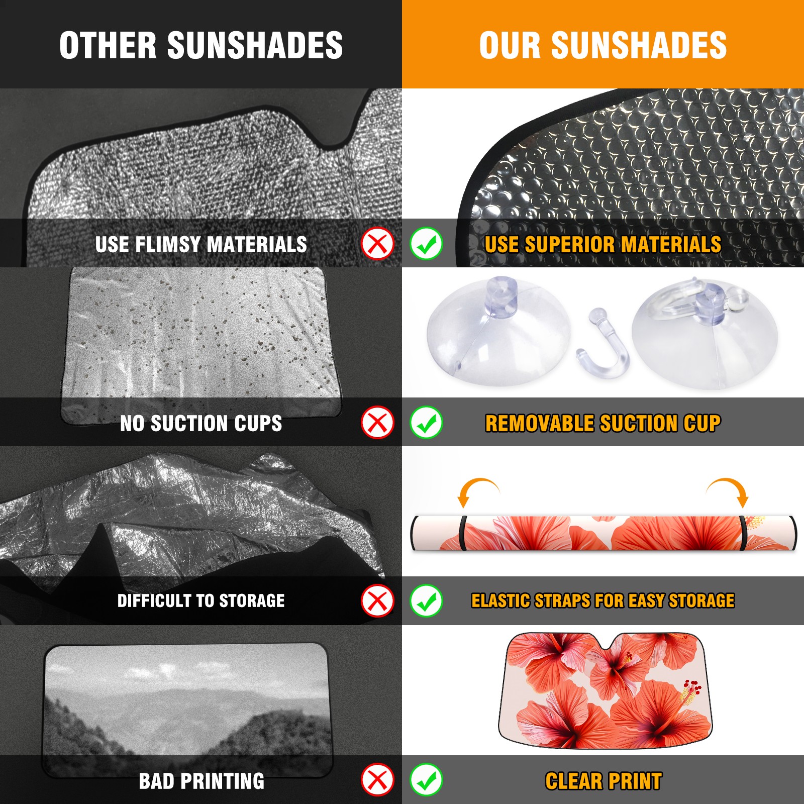 • </b>ZXIVGOQFR Foldable Premium Car Windshield Sunshade is your great solution to reduce your car’s interior temperature dramatically! This is definitely a must-have item for your summer travel! </b> <br> </b>Size: 63"L x 33.5"W </b> <br> </b>Blocking Uv Rays & Heat Insulation</b><br> Our vehicle sunshade provides effective UV, sun, and summer heat protection .Maintains dashboards by preventing fading and cracking <br> </b>Easy-To-Store Folding Design Makes Storage Convenient </b><br> ZXIVGOQFR car sunshades come with removable suction cups and elastic bands that you can install easily and quickly, and the removable suction cups will not leave any marks on your windows when removed. Within seconds, windshield visor can be installed and removed. When not in use,the front windshield can be easily and effectively placed on the door pocket or the dashboard, which is beautiful and does not take up space in the car.<br> <br> </b>PUT UP A 'PROTECTIVE UMBRELLA' FOR YOUR BELOVED CAR!</b>