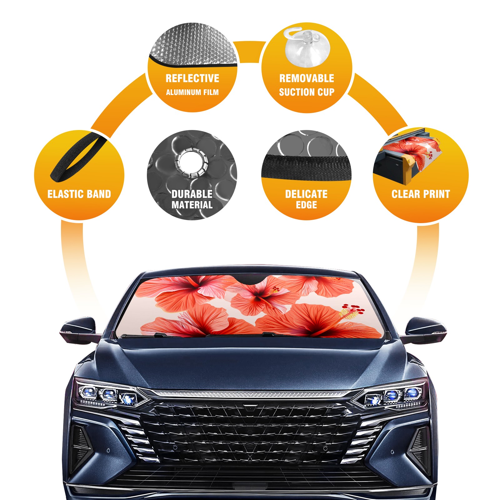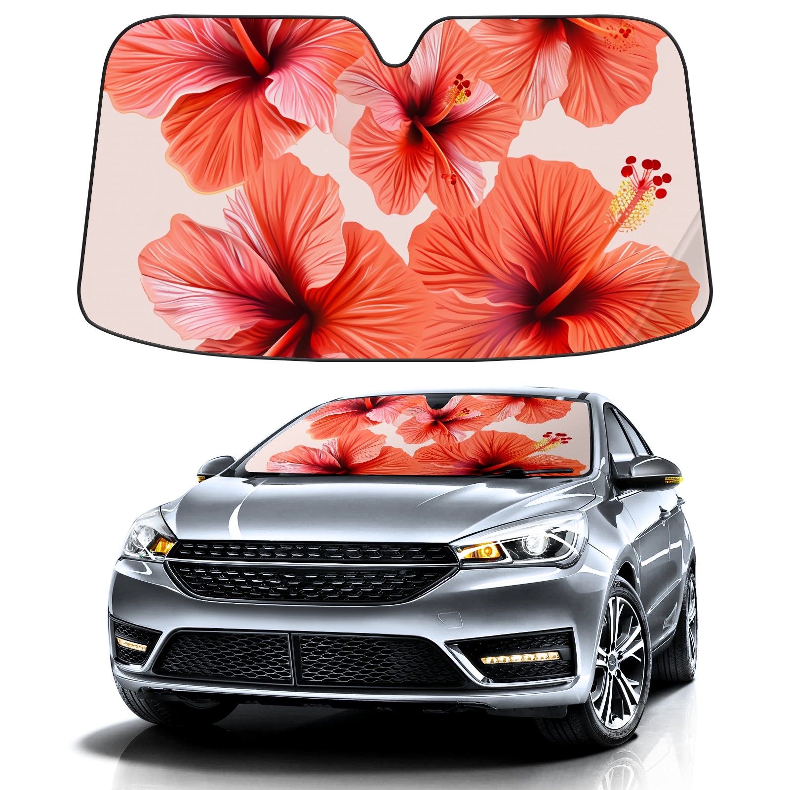 Car Windshield Sun Shade for Front Window Fusang Flower A Foldable Vehicle Windshield Car Sun Visor Covers Automotive Window Protector Car Privacy Sun Blocker