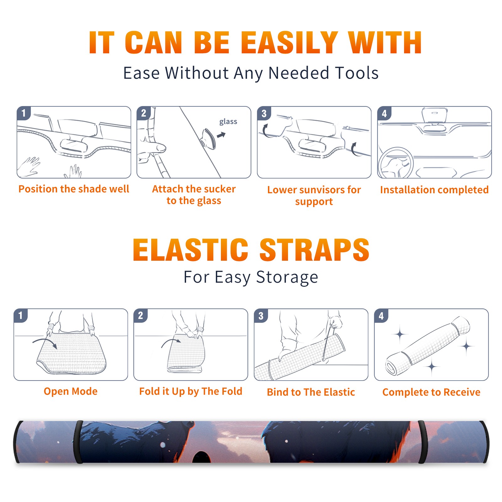 • </b>ZXIVGOQFR Foldable Premium Car Windshield Sunshade is your great solution to reduce your car’s interior temperature dramatically! This is definitely a must-have item for your summer travel! </b> <br> </b>Size: 63"L x 33.5"W </b> <br> </b>Blocking Uv Rays & Heat Insulation</b><br> Our vehicle sunshade provides effective UV, sun, and summer heat protection .Maintains dashboards by preventing fading and cracking <br> </b>Easy-To-Store Folding Design Makes Storage Convenient </b><br> ZXIVGOQFR car sunshades come with removable suction cups and elastic bands that you can install easily and quickly, and the removable suction cups will not leave any marks on your windows when removed. Within seconds, windshield visor can be installed and removed. When not in use,the front windshield can be easily and effectively placed on the door pocket or the dashboard, which is beautiful and does not take up space in the car.<br> <br> </b>PUT UP A 'PROTECTIVE UMBRELLA' FOR YOUR BELOVED CAR!</b>
