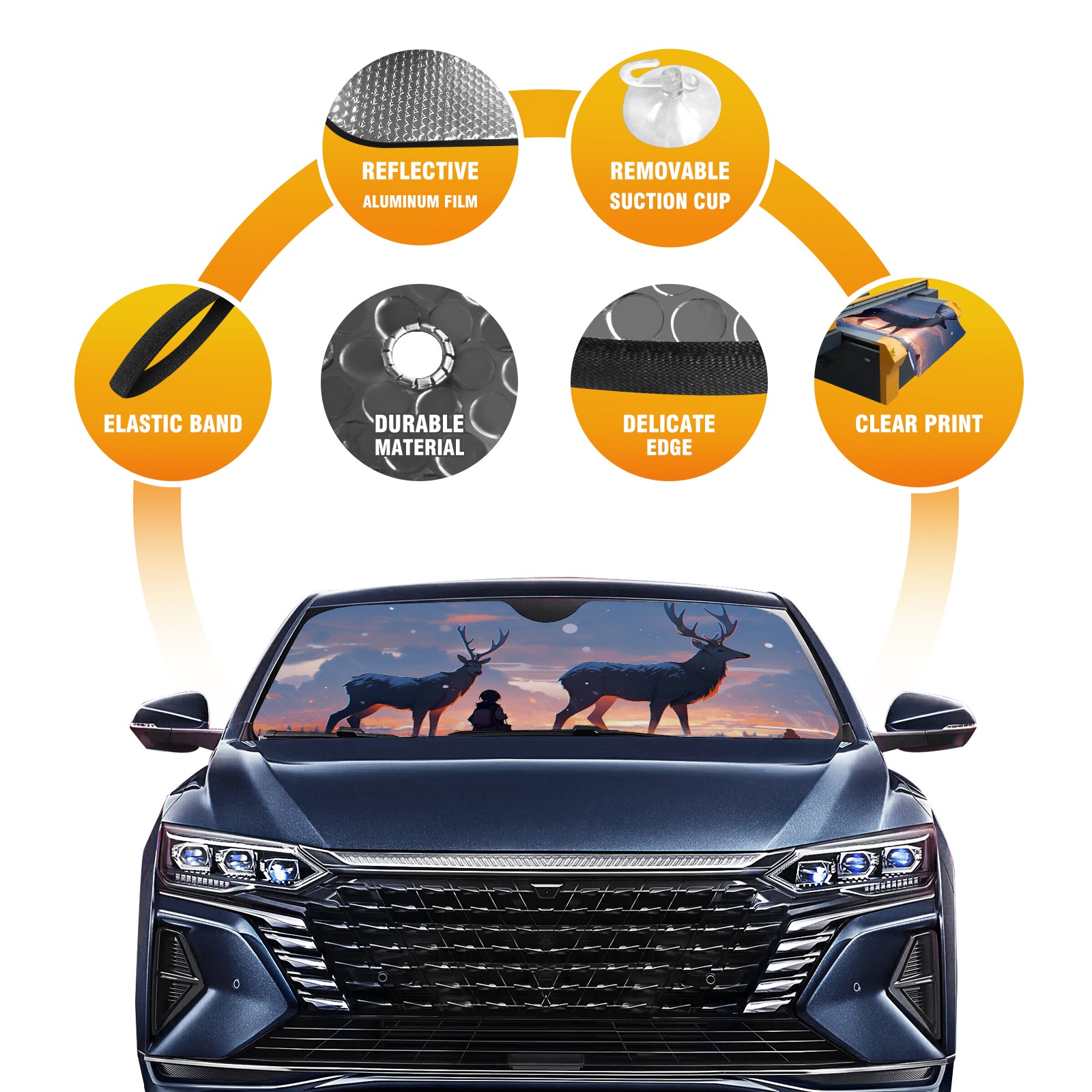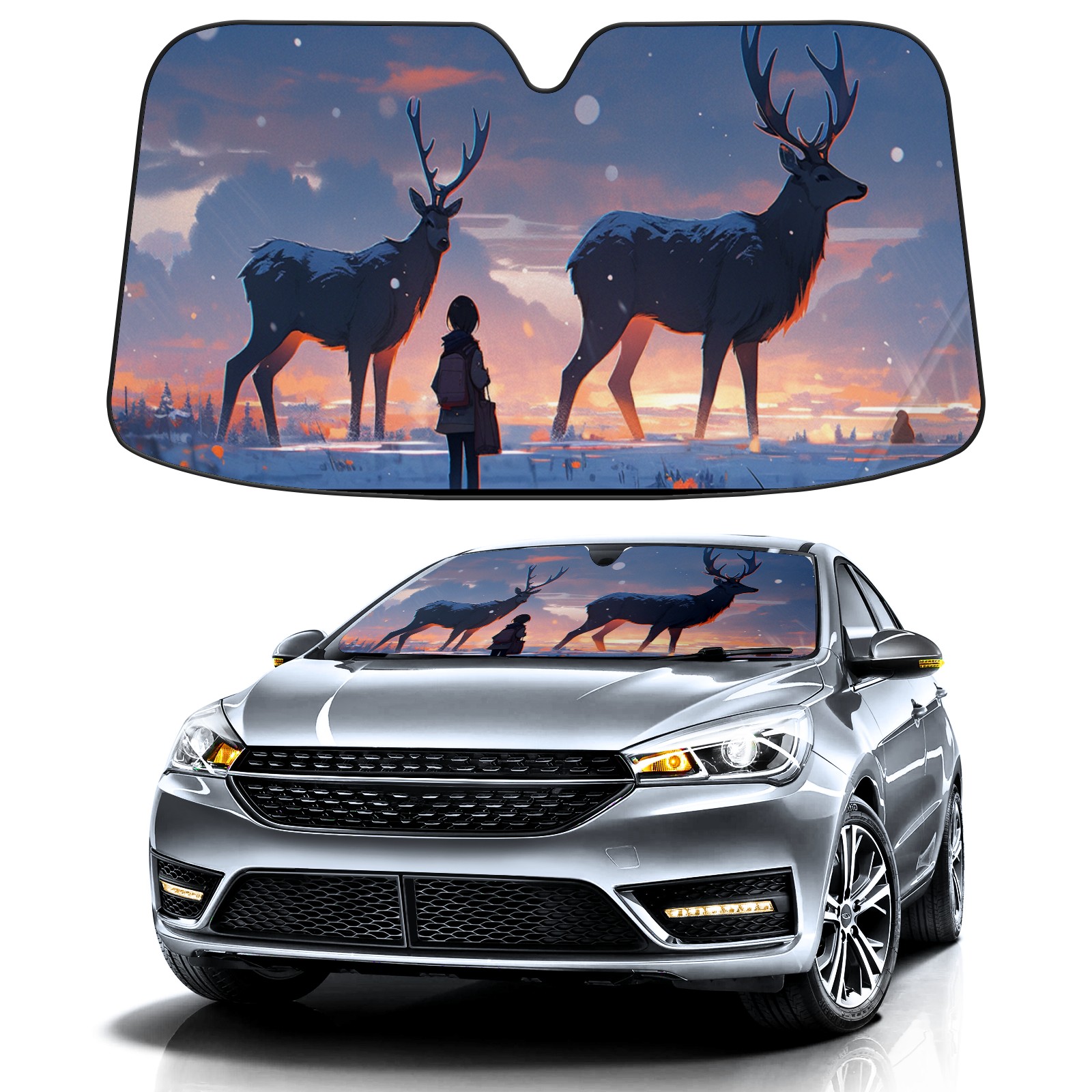 Car Windshield Sun Shade for Front Window Deer Foldable Vehicle Windshield Car Sun Visor Covers Automotive Window Protector Car Privacy Sun Blocker