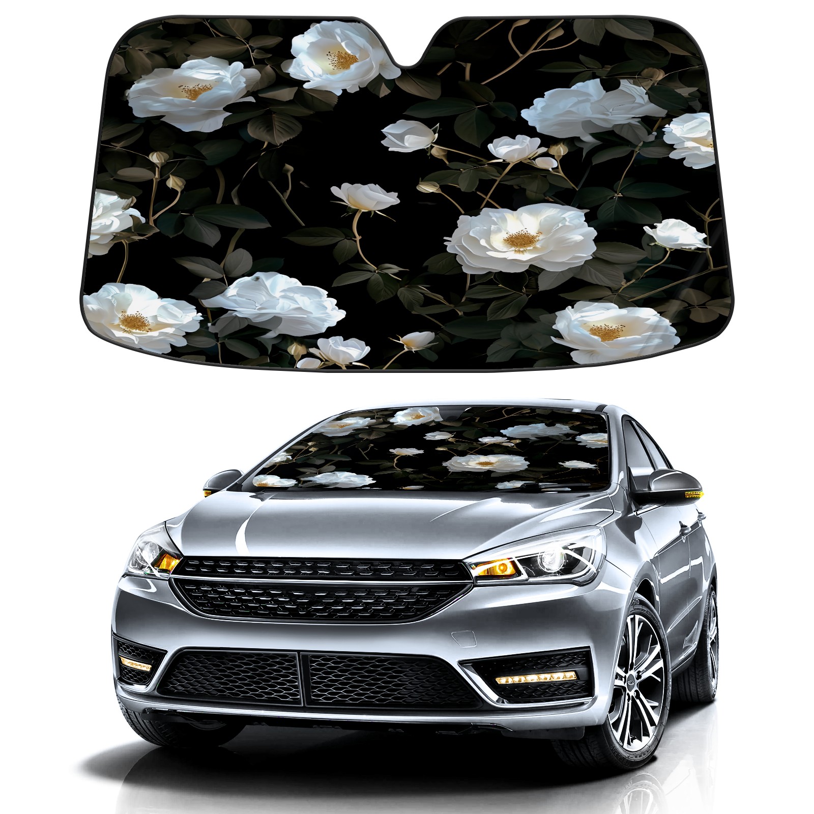 Car Windshield Sun Shade for Front Window Rugosa Rose Foldable Vehicle Windshield Car Sun Visor Covers Automotive Window Protector Car Privacy Sun Blocker