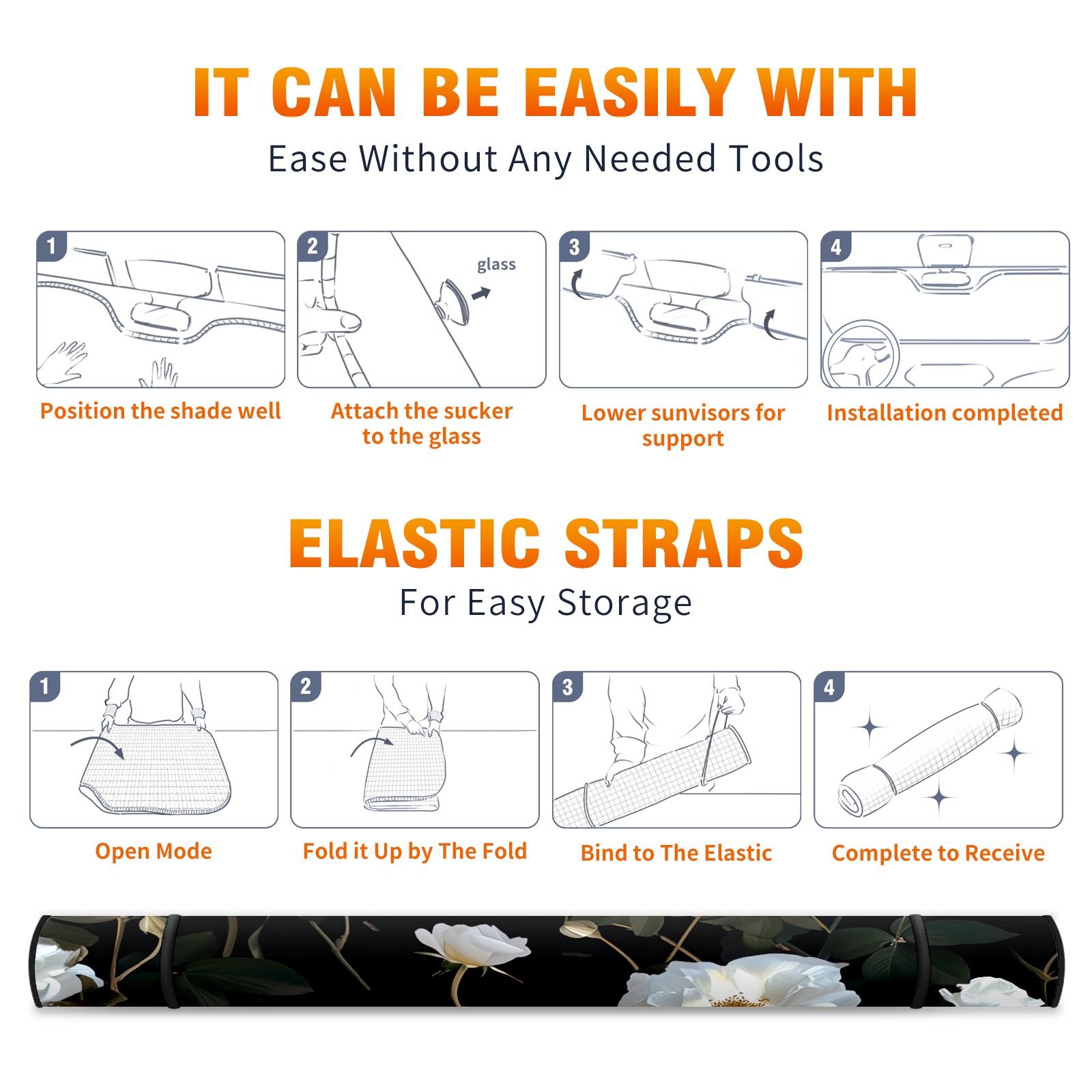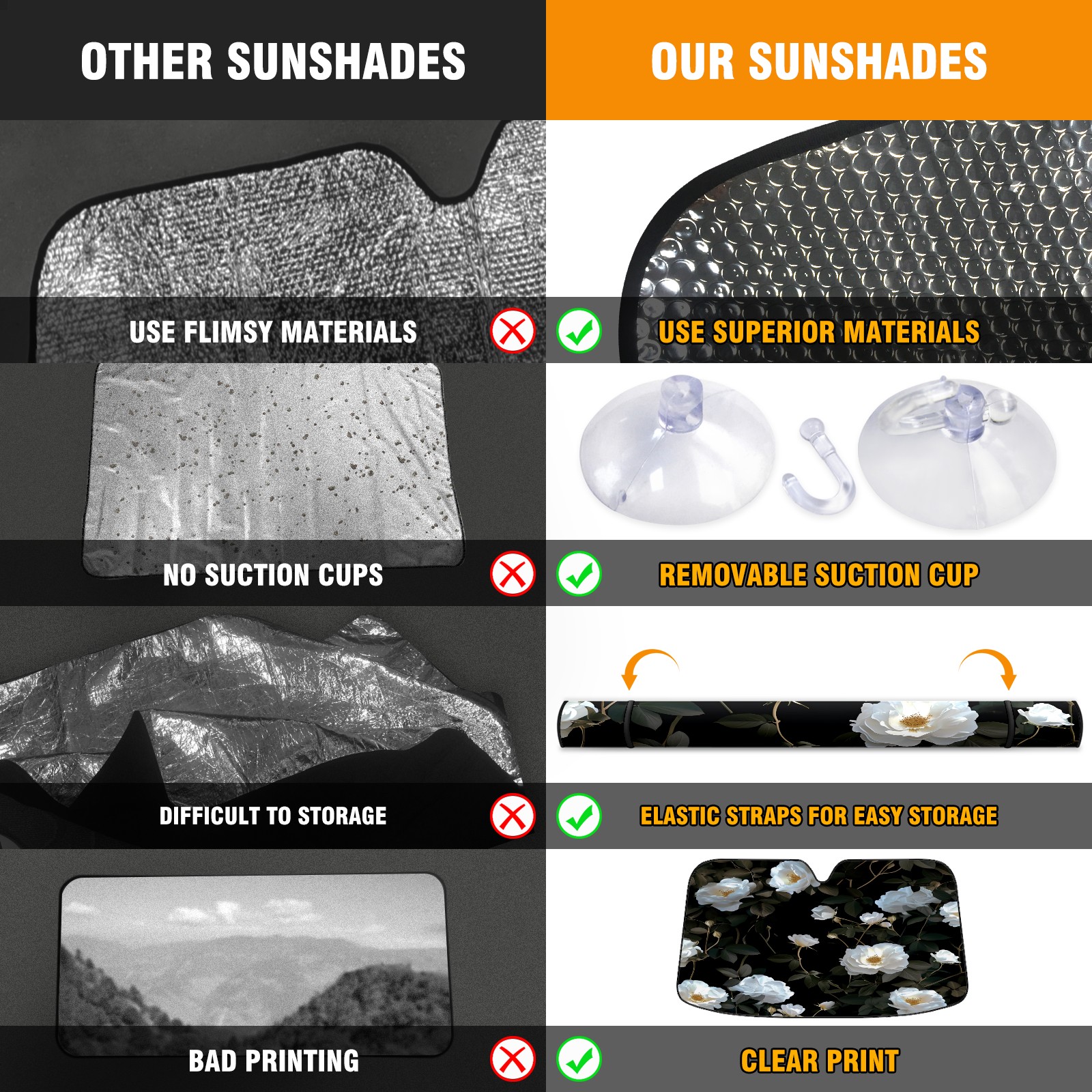 • </b>ZXIVGOQFR Foldable Premium Car Windshield Sunshade is your great solution to reduce your car’s interior temperature dramatically! This is definitely a must-have item for your summer travel! </b> <br> </b>Size: 63"L x 33.5"W </b> <br> </b>Blocking Uv Rays & Heat Insulation</b><br> Our vehicle sunshade provides effective UV, sun, and summer heat protection .Maintains dashboards by preventing fading and cracking <br> </b>Easy-To-Store Folding Design Makes Storage Convenient </b><br> ZXIVGOQFR car sunshades come with removable suction cups and elastic bands that you can install easily and quickly, and the removable suction cups will not leave any marks on your windows when removed. Within seconds, windshield visor can be installed and removed. When not in use,the front windshield can be easily and effectively placed on the door pocket or the dashboard, which is beautiful and does not take up space in the car.<br> <br> </b>PUT UP A 'PROTECTIVE UMBRELLA' FOR YOUR BELOVED CAR!</b>