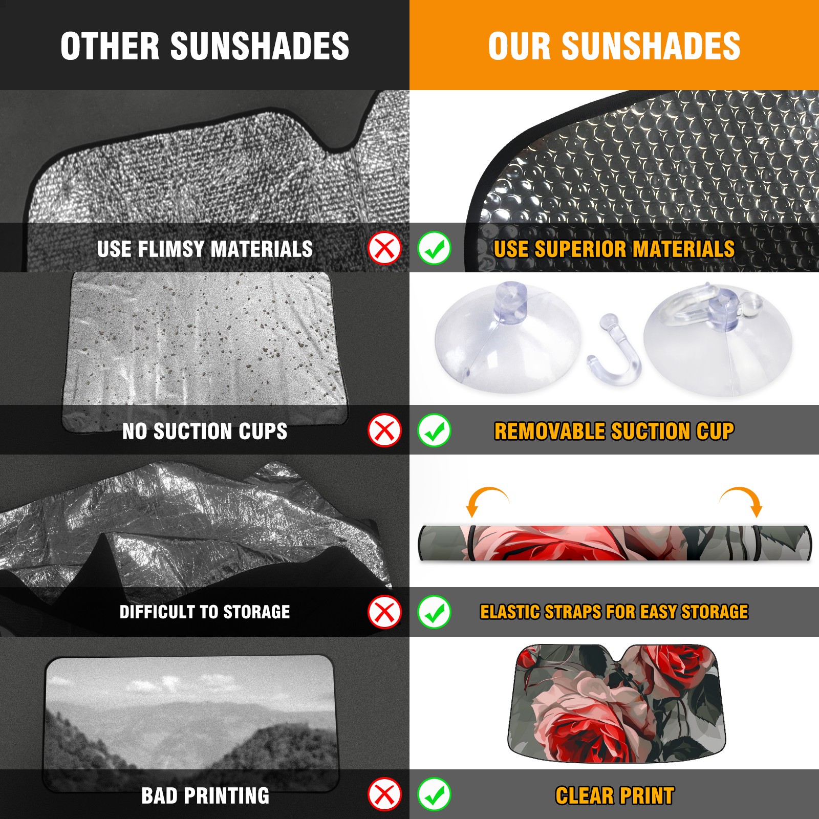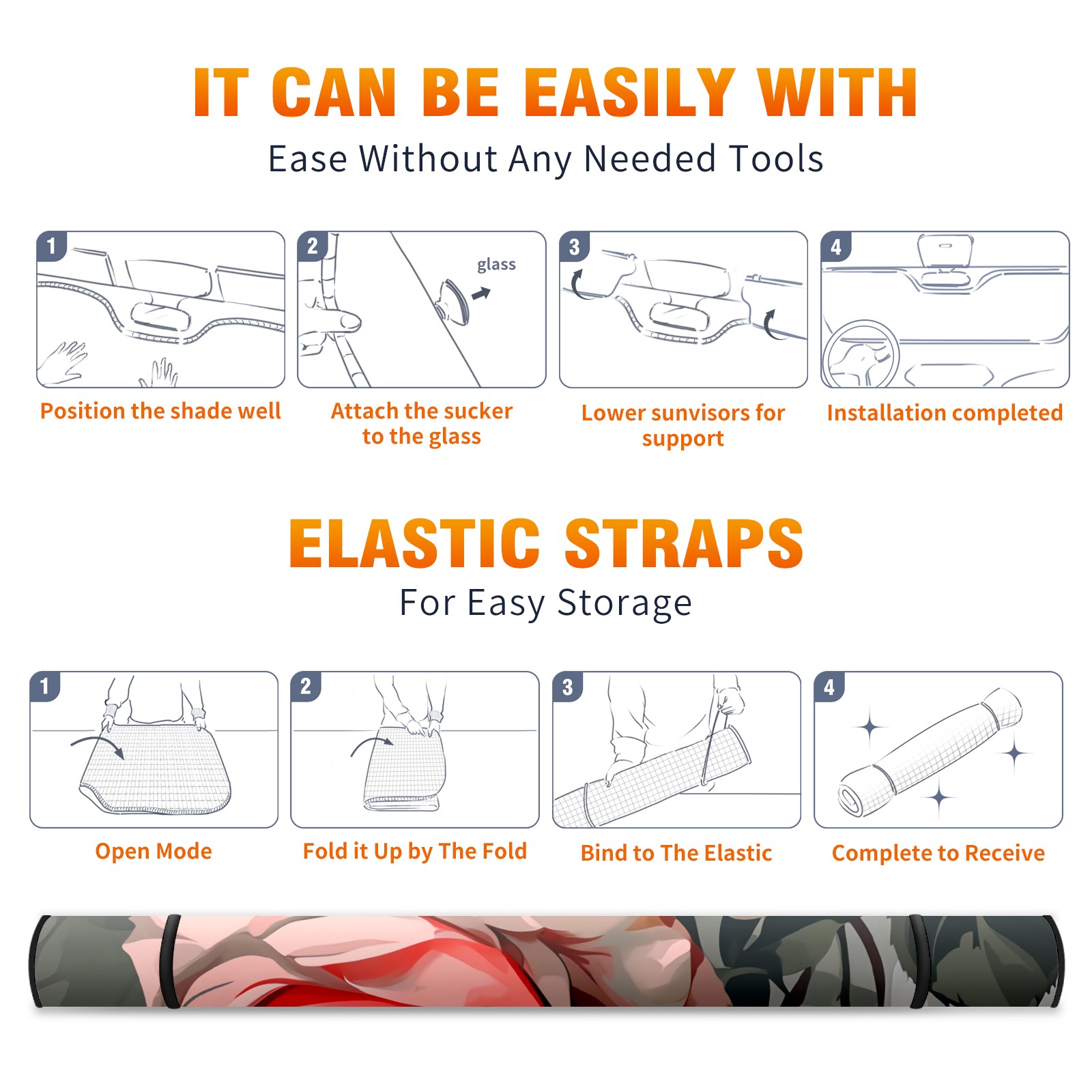 • </b>ZXIVGOQFR Foldable Premium Car Windshield Sunshade is your great solution to reduce your car’s interior temperature dramatically! This is definitely a must-have item for your summer travel! </b> <br> </b>Size: 63"L x 33.5"W </b> <br> </b>Blocking Uv Rays & Heat Insulation</b><br> Our vehicle sunshade provides effective UV, sun, and summer heat protection .Maintains dashboards by preventing fading and cracking <br> </b>Easy-To-Store Folding Design Makes Storage Convenient </b><br> ZXIVGOQFR car sunshades come with removable suction cups and elastic bands that you can install easily and quickly, and the removable suction cups will not leave any marks on your windows when removed. Within seconds, windshield visor can be installed and removed. When not in use,the front windshield can be easily and effectively placed on the door pocket or the dashboard, which is beautiful and does not take up space in the car.<br> <br> </b>PUT UP A 'PROTECTIVE UMBRELLA' FOR YOUR BELOVED CAR!</b>