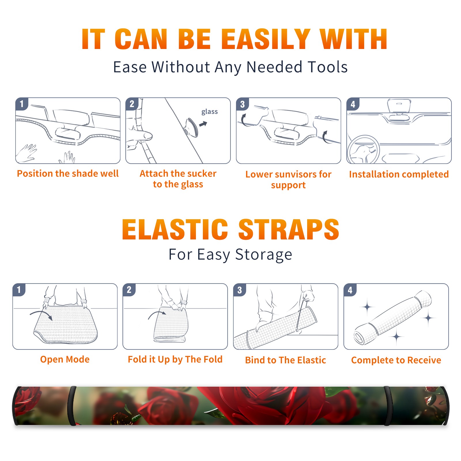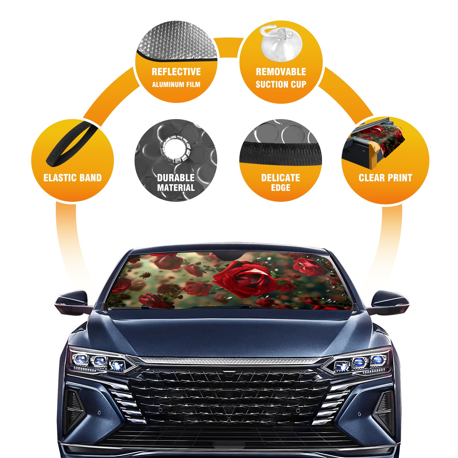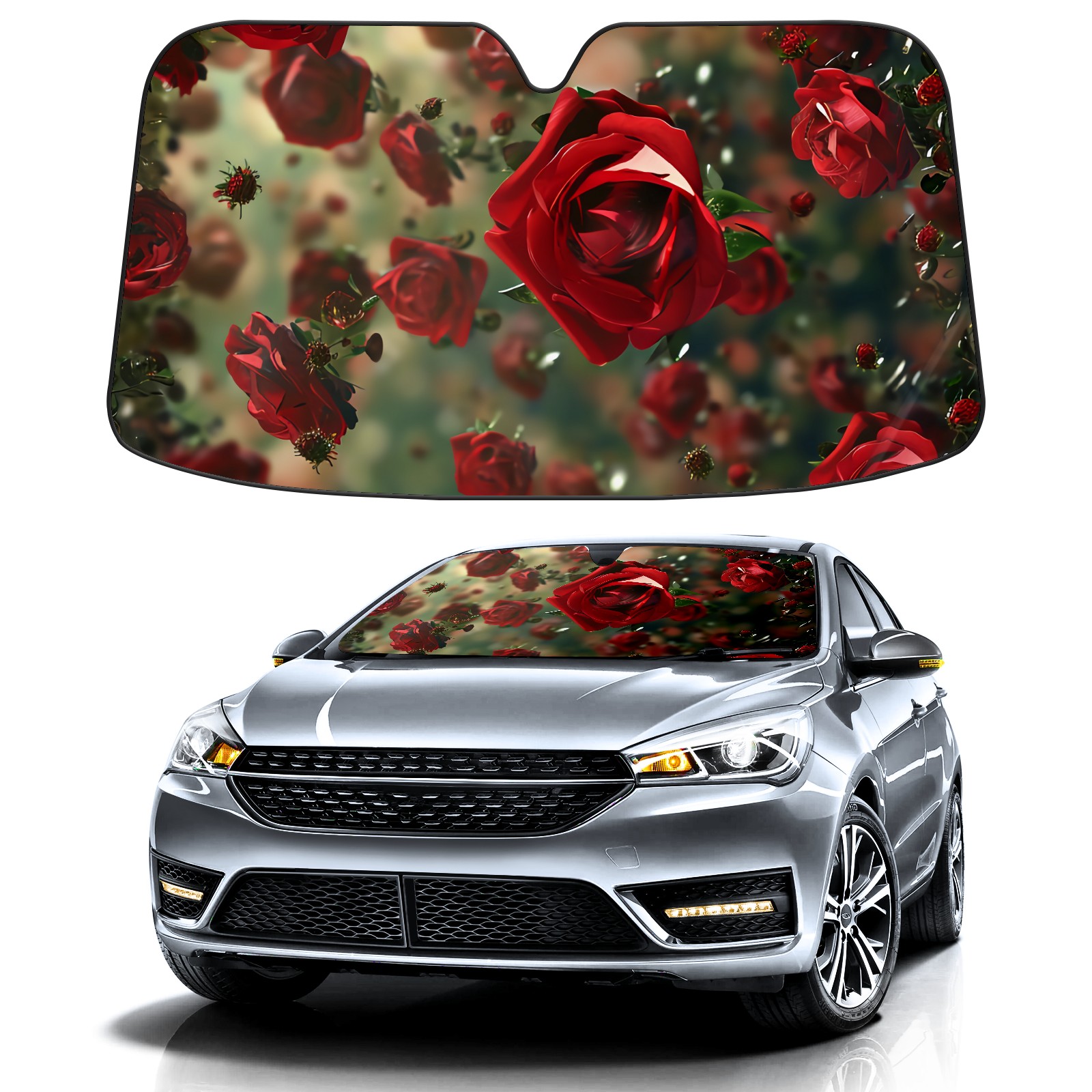 Car Windshield Sun Shade for Front Window Rose Flower B Foldable Vehicle Windshield Car Sun Visor Covers Automotive Window Protector Car Privacy Sun Blocker