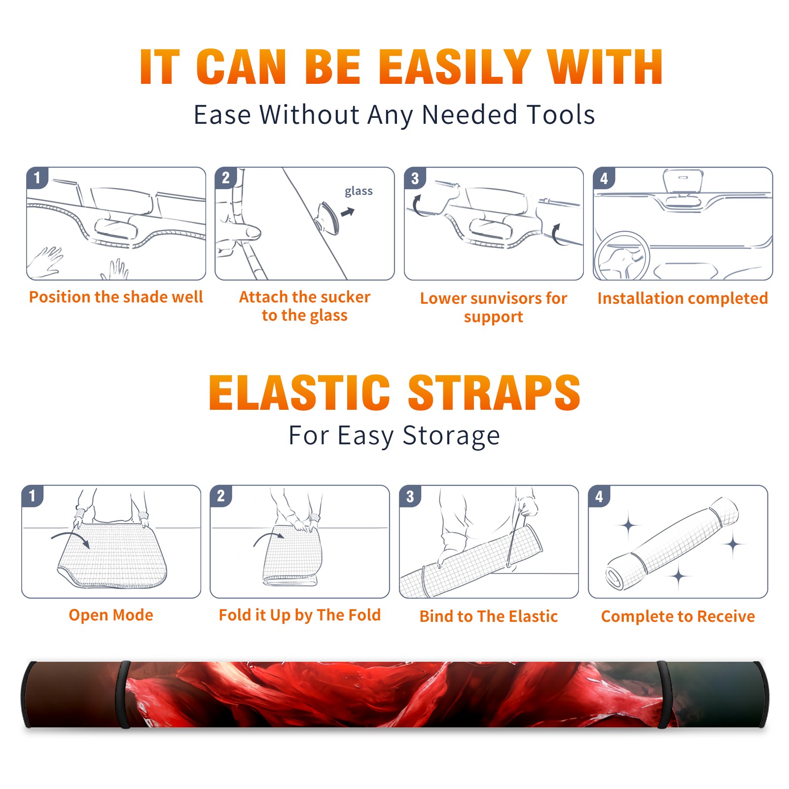 • </b>ZXIVGOQFR Foldable Premium Car Windshield Sunshade is your great solution to reduce your car’s interior temperature dramatically! This is definitely a must-have item for your summer travel! </b> <br> </b>Size: 63"L x 33.5"W </b> <br> </b>Blocking Uv Rays & Heat Insulation</b><br> Our vehicle sunshade provides effective UV, sun, and summer heat protection .Maintains dashboards by preventing fading and cracking <br> </b>Easy-To-Store Folding Design Makes Storage Convenient </b><br> ZXIVGOQFR car sunshades come with removable suction cups and elastic bands that you can install easily and quickly, and the removable suction cups will not leave any marks on your windows when removed. Within seconds, windshield visor can be installed and removed. When not in use,the front windshield can be easily and effectively placed on the door pocket or the dashboard, which is beautiful and does not take up space in the car.<br> <br> </b>PUT UP A 'PROTECTIVE UMBRELLA' FOR YOUR BELOVED CAR!</b>