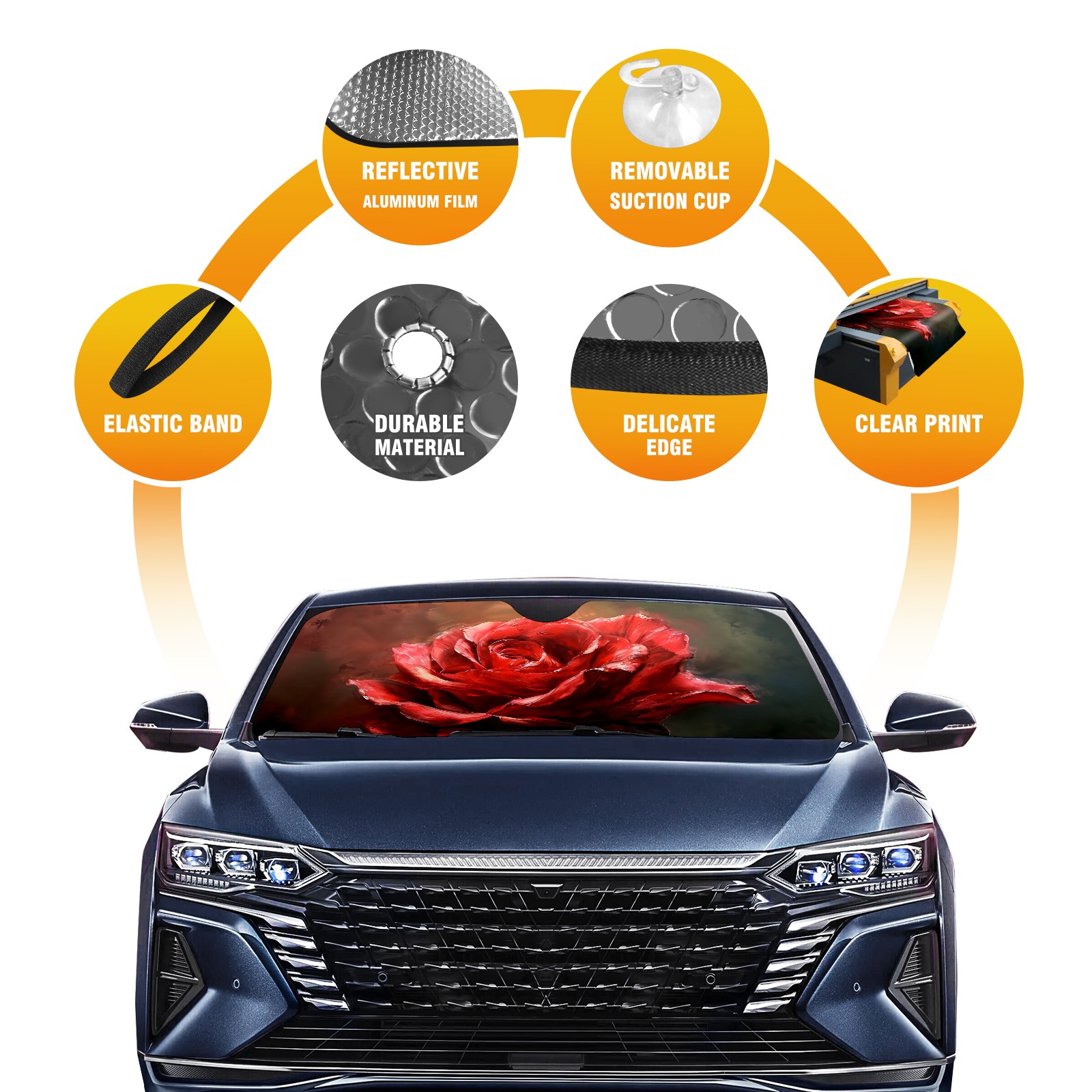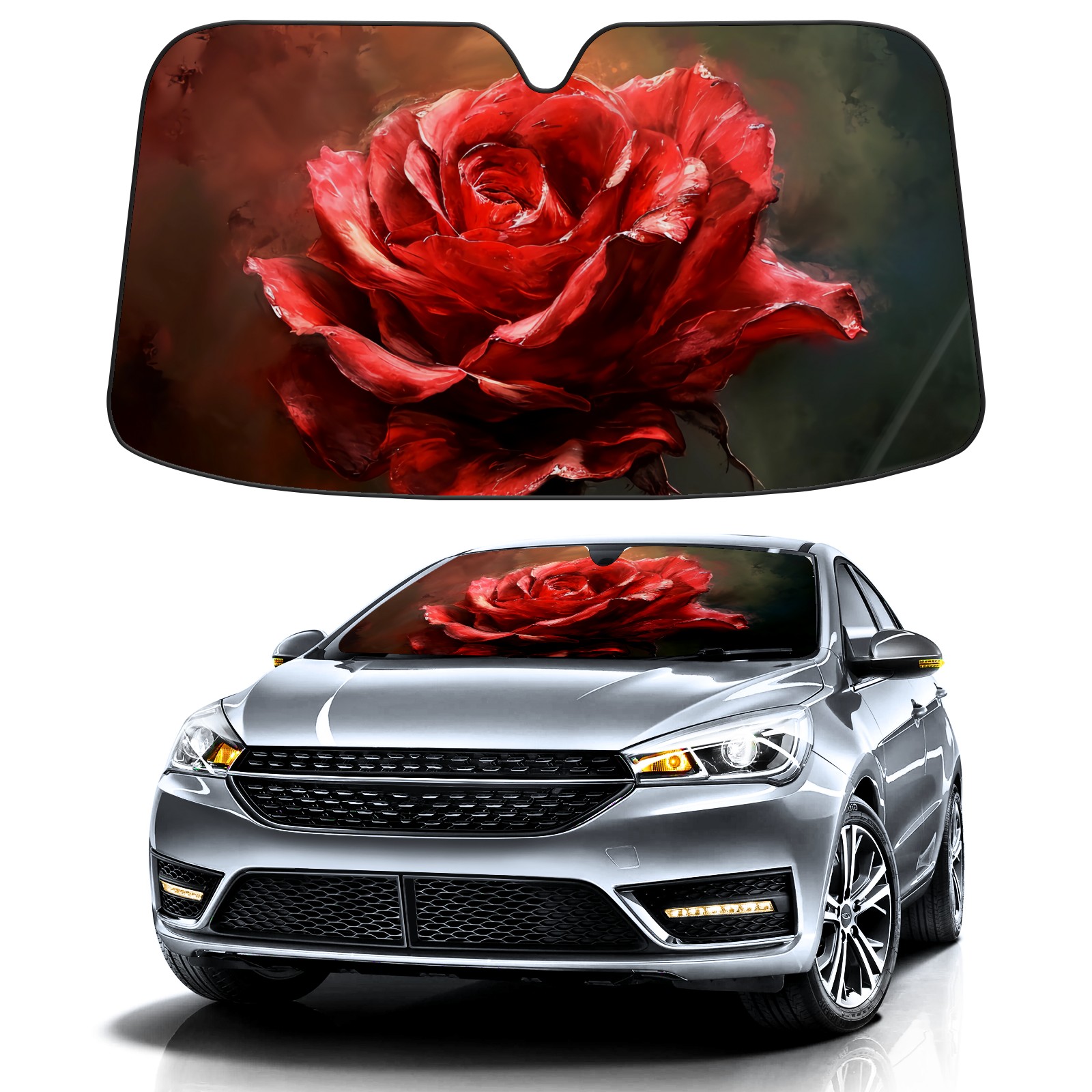 Car Windshield Sun Shade for Front Window Rose D Foldable Vehicle Windshield Car Sun Visor Covers Automotive Window Protector Car Privacy Sun Blocker
