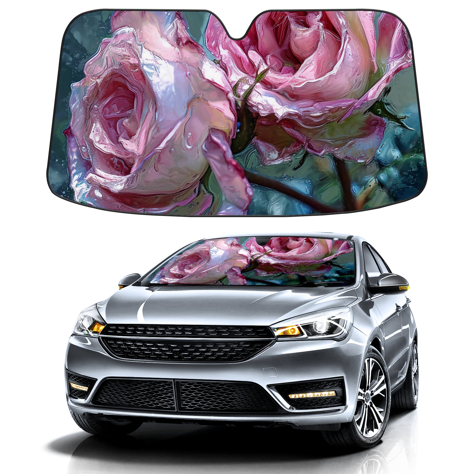 Car Windshield Sun Shade for Front Window Rose Petal E Foldable Vehicle Windshield Car Sun Visor Covers Automotive Window Protector Car Privacy Sun Blocker