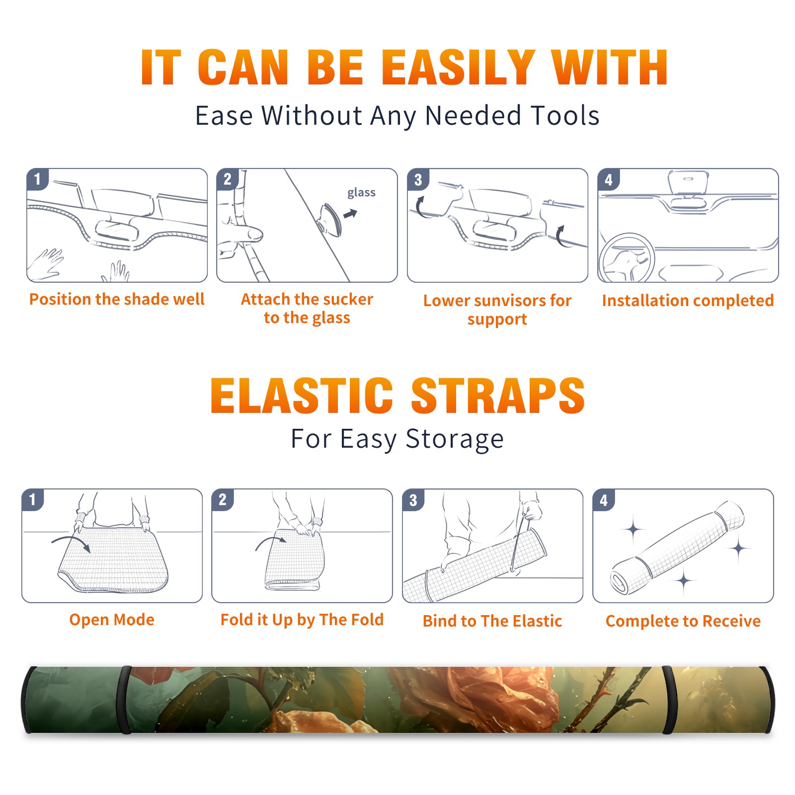 • </b>ZXIVGOQFR Foldable Premium Car Windshield Sunshade is your great solution to reduce your car’s interior temperature dramatically! This is definitely a must-have item for your summer travel! </b> <br> </b>Size: 63"L x 33.5"W </b> <br> </b>Blocking Uv Rays & Heat Insulation</b><br> Our vehicle sunshade provides effective UV, sun, and summer heat protection .Maintains dashboards by preventing fading and cracking <br> </b>Easy-To-Store Folding Design Makes Storage Convenient </b><br> ZXIVGOQFR car sunshades come with removable suction cups and elastic bands that you can install easily and quickly, and the removable suction cups will not leave any marks on your windows when removed. Within seconds, windshield visor can be installed and removed. When not in use,the front windshield can be easily and effectively placed on the door pocket or the dashboard, which is beautiful and does not take up space in the car.<br> <br> </b>PUT UP A 'PROTECTIVE UMBRELLA' FOR YOUR BELOVED CAR!</b>