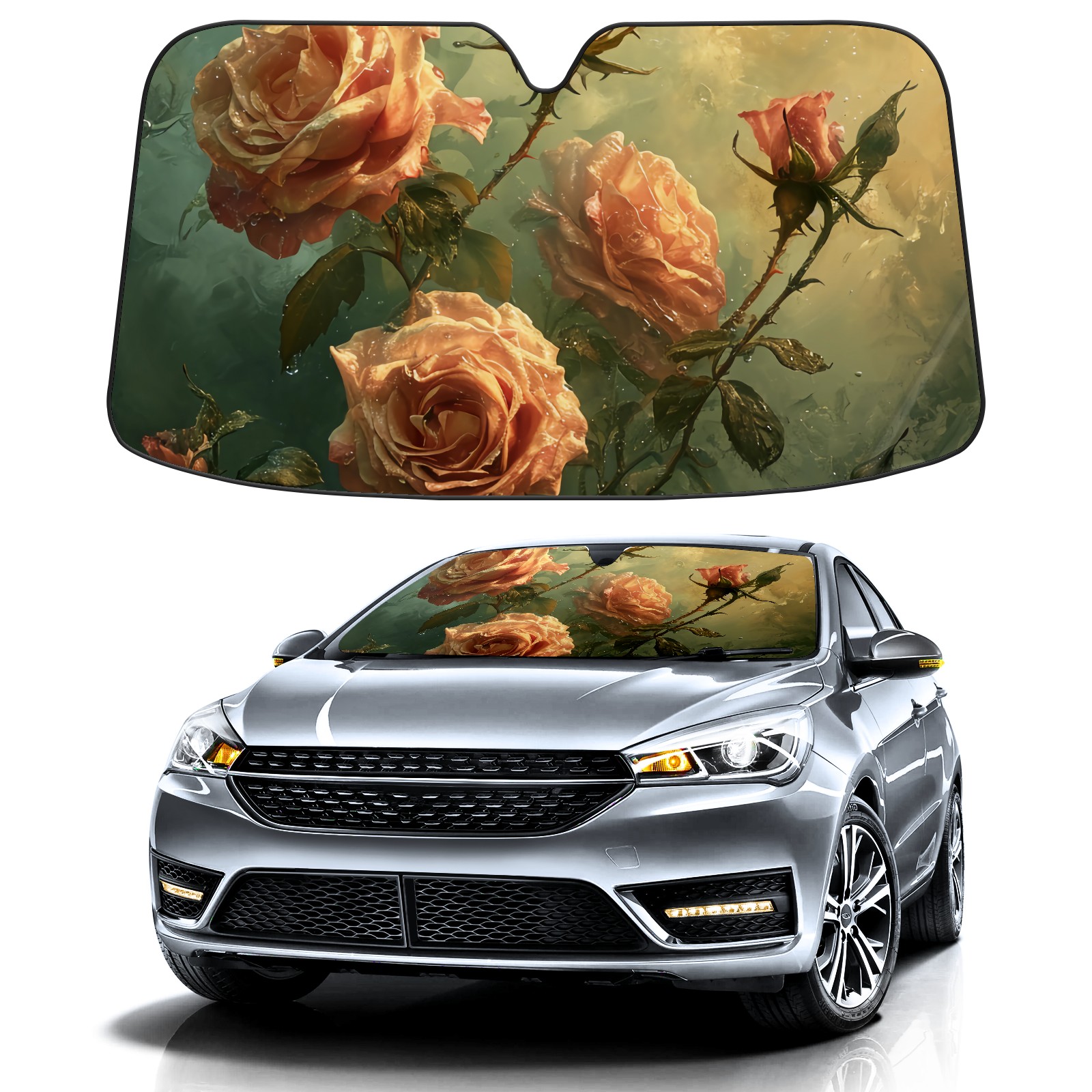 Car Windshield Sun Shade for Front Window Rose Flower E Foldable Vehicle Windshield Car Sun Visor Covers Automotive Window Protector Car Privacy Sun Blocker