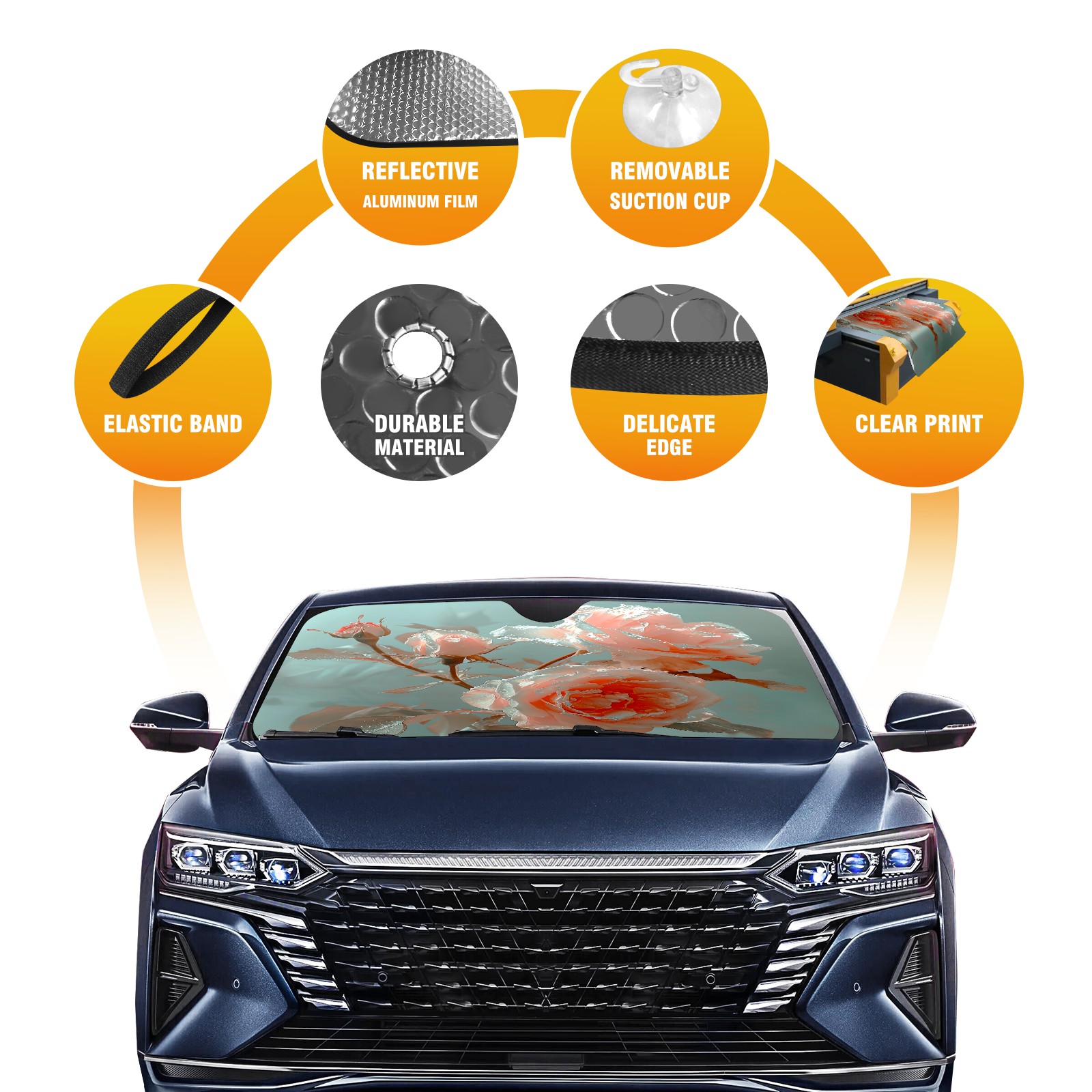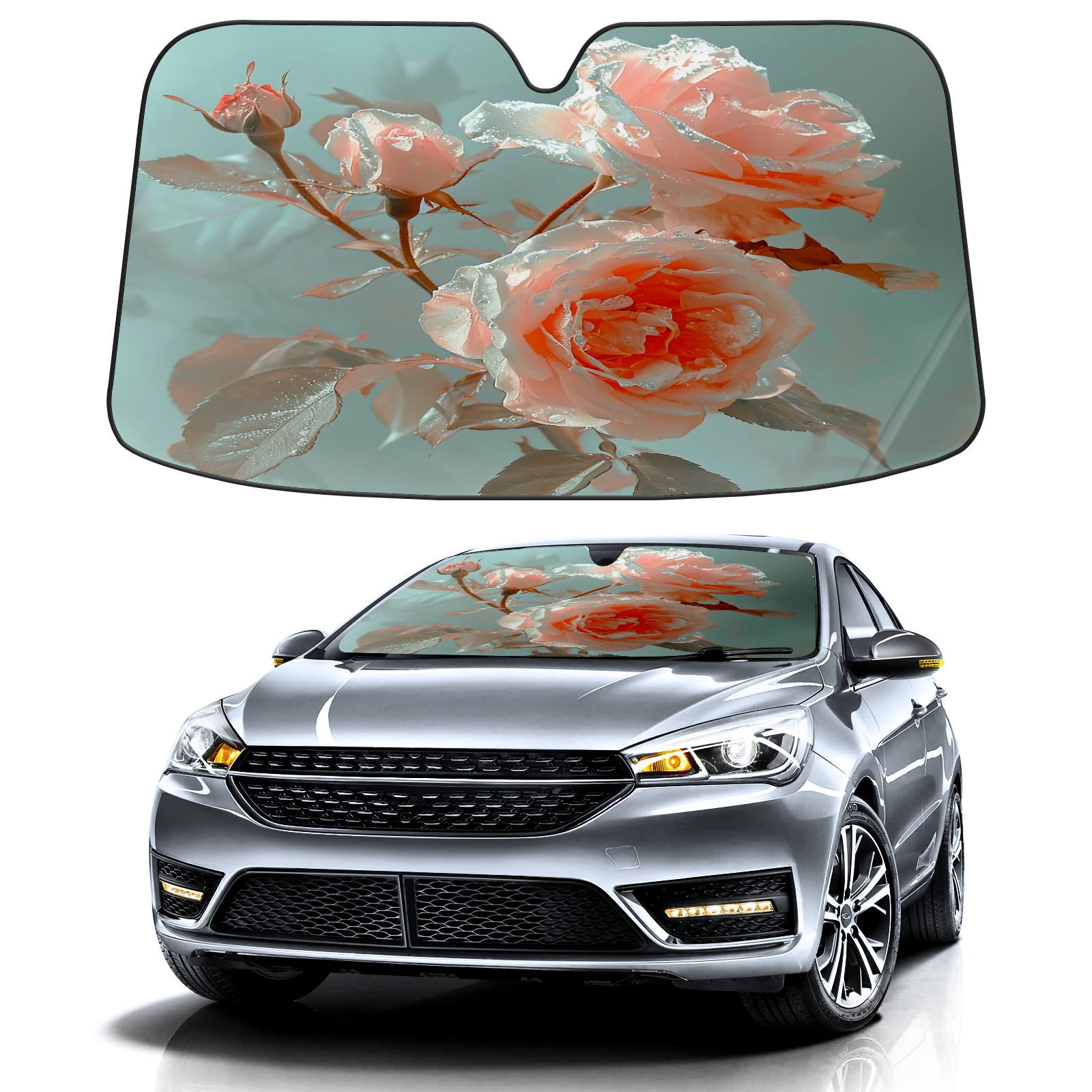 Car Windshield Sun Shade for Front Window Rose Flower F Foldable Vehicle Windshield Car Sun Visor Covers Automotive Window Protector Car Privacy Sun Blocker
