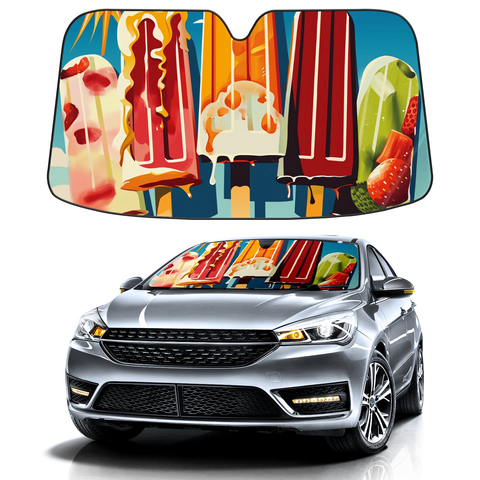 • </b>ZXIVGOQFR Foldable Premium Car Windshield Sunshade is your great solution to reduce your car’s interior temperature dramatically! This is definitely a must-have item for your summer travel! </b> <br> </b>Size: 63"L x 33.5"W </b> <br> </b>Blocking Uv Rays & Heat Insulation</b><br> Our vehicle sunshade provides effective UV, sun, and summer heat protection .Maintains dashboards by preventing fading and cracking <br> </b>Easy-To-Store Folding Design Makes Storage Convenient </b><br> ZXIVGOQFR car sunshades come with removable suction cups and elastic bands that you can install easily and quickly, and the removable suction cups will not leave any marks on your windows when removed. Within seconds, windshield visor can be installed and removed. When not in use,the front windshield can be easily and effectively placed on the door pocket or the dashboard, which is beautiful and does not take up space in the car.<br> <br> </b>PUT UP A 'PROTECTIVE UMBRELLA' FOR YOUR BELOVED CAR!</b>