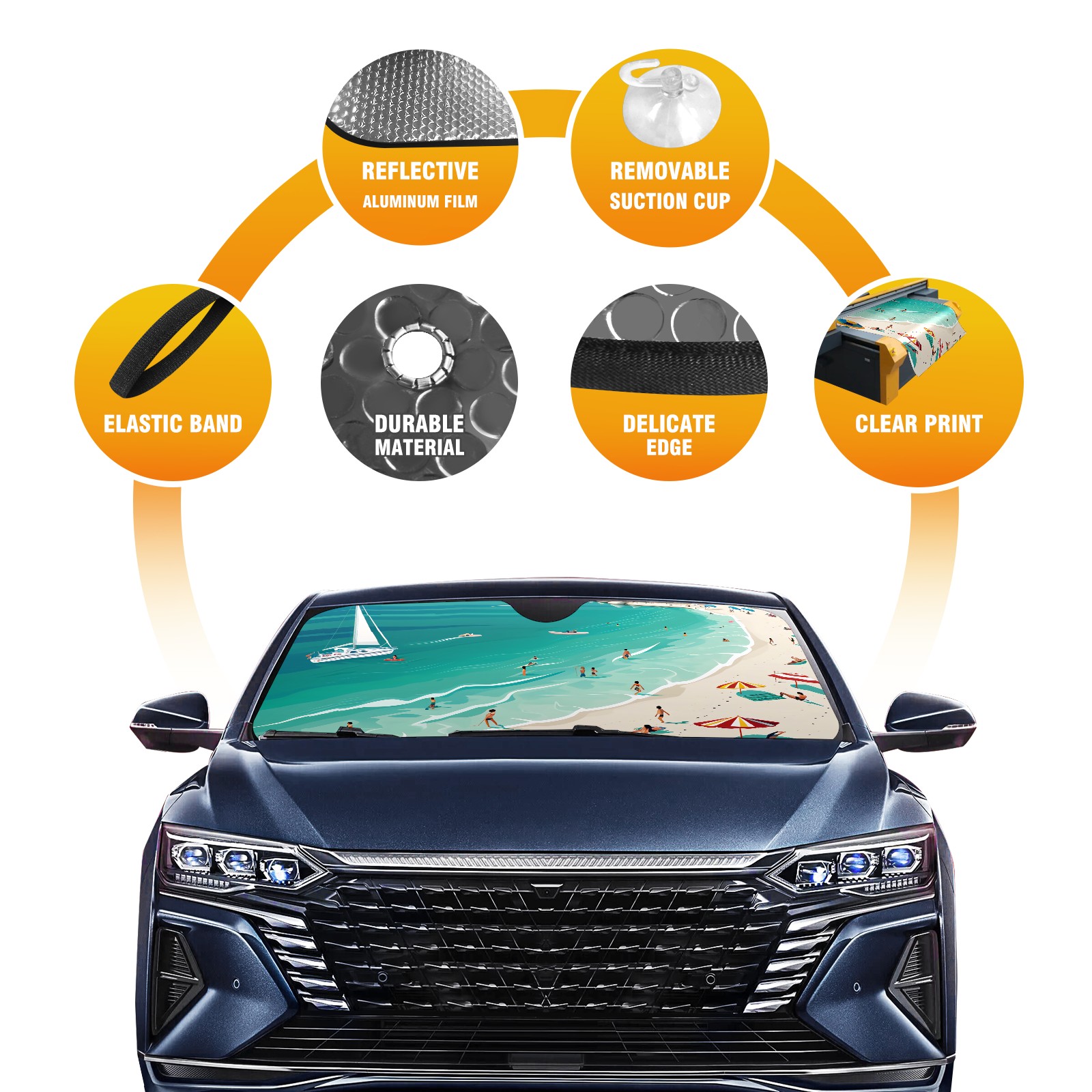 Car Windshield Sun Shade for Front Window Summer Beach Foldable Vehicle Windshield Car Sun Visor Covers Automotive Window Protector Car Privacy Sun Blocker
