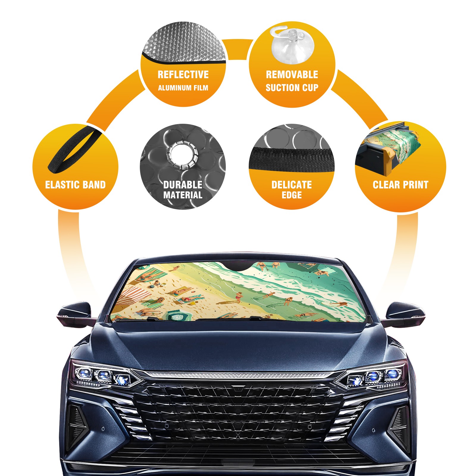 Car Windshield Sun Shade for Front Window Summer Beaches Foldable Vehicle Windshield Car Sun Visor Covers Automotive Window Protector Car Privacy Sun Blocker