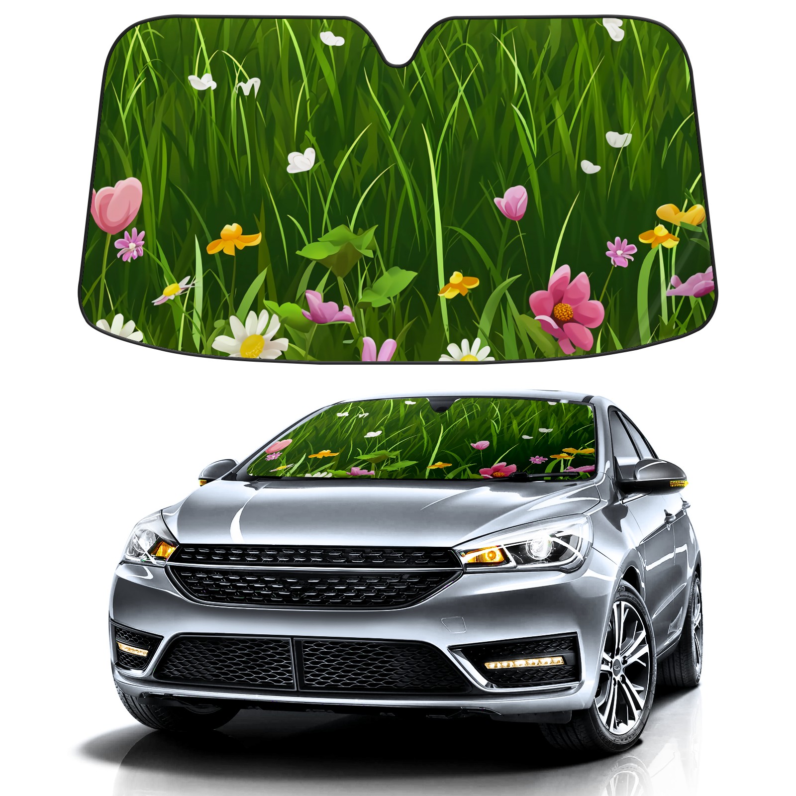 Car Windshield Sun Shade for Front Window Spring Flowers Foldable Vehicle Windshield Car Sun Visor Covers Automotive Window Protector Car Privacy Sun Blocker