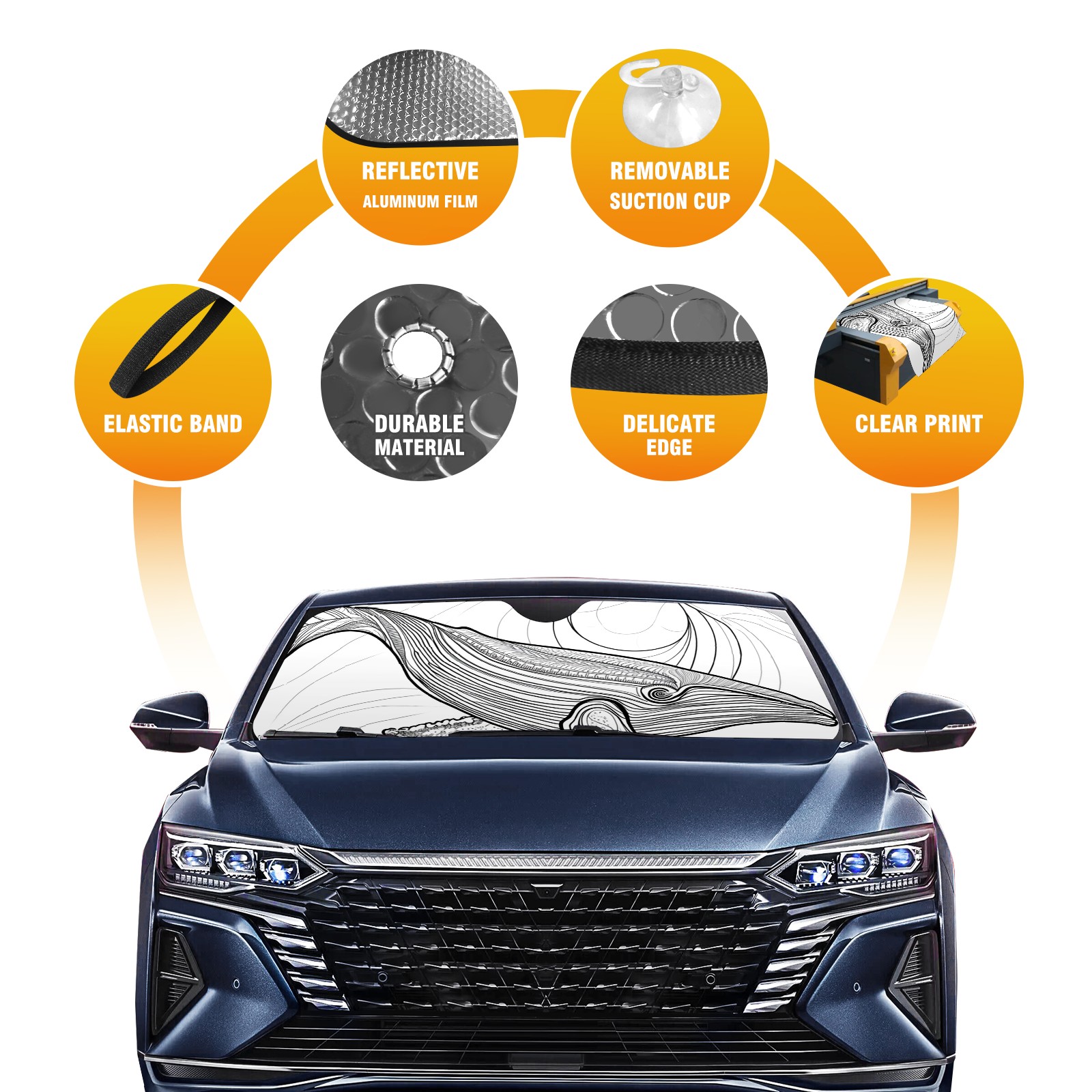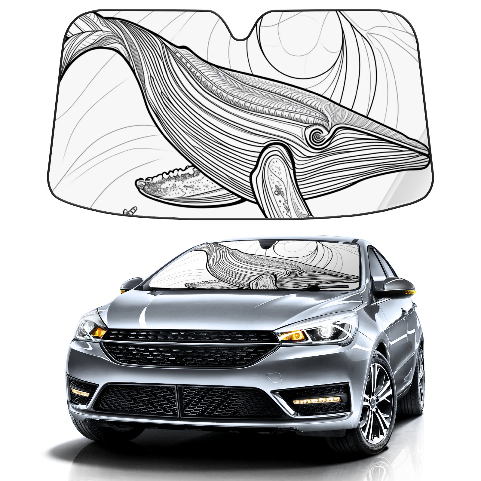 Car Windshield Sun Shade for Front Window Whale 2 Foldable Vehicle Windshield Car Sun Visor Covers Automotive Window Protector Car Privacy Sun Blocker