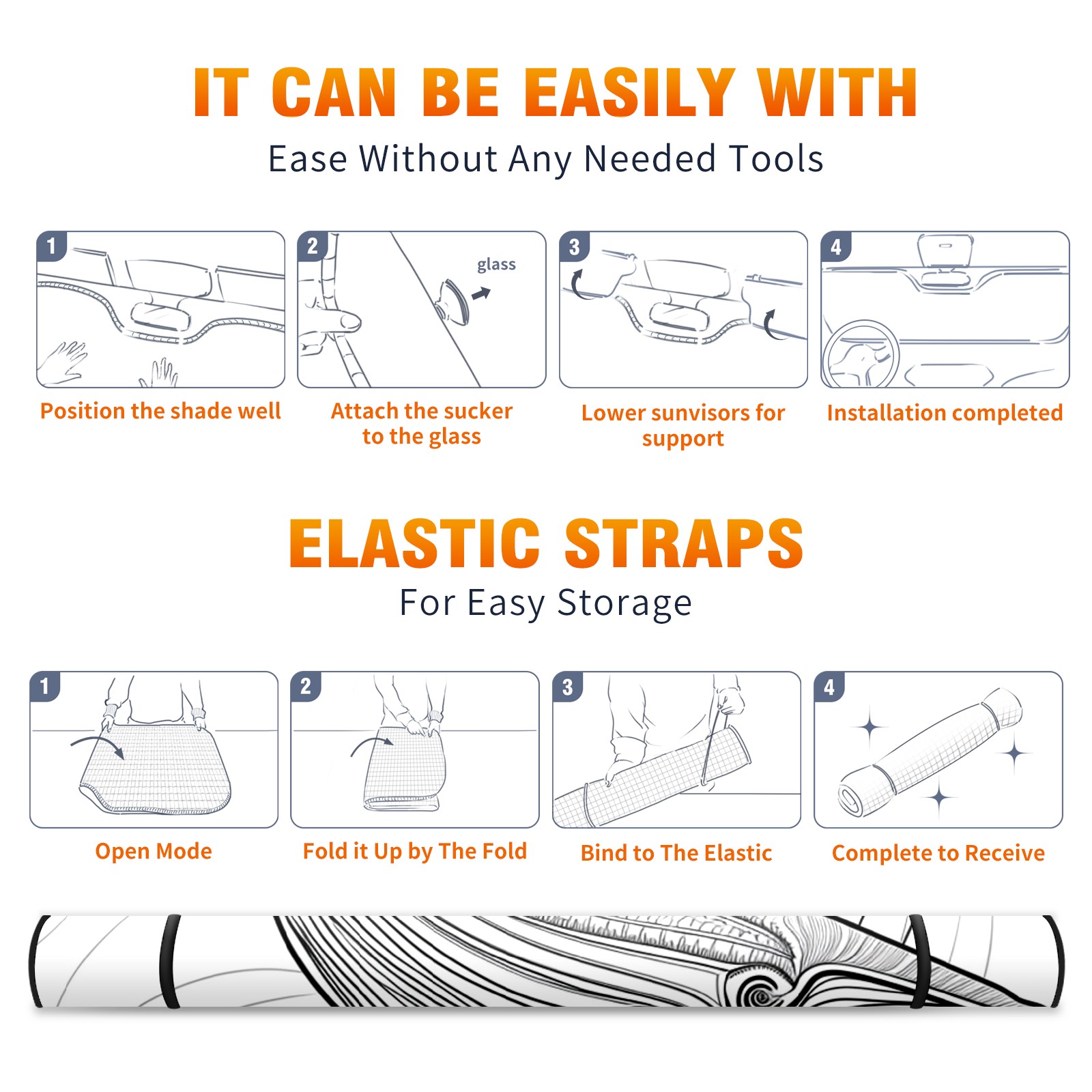 • </b>ZXIVGOQFR Foldable Premium Car Windshield Sunshade is your great solution to reduce your car’s interior temperature dramatically! This is definitely a must-have item for your summer travel! </b> <br> </b>Size: 63"L x 33.5"W </b> <br> </b>Blocking Uv Rays & Heat Insulation</b><br> Our vehicle sunshade provides effective UV, sun, and summer heat protection .Maintains dashboards by preventing fading and cracking <br> </b>Easy-To-Store Folding Design Makes Storage Convenient </b><br> ZXIVGOQFR car sunshades come with removable suction cups and elastic bands that you can install easily and quickly, and the removable suction cups will not leave any marks on your windows when removed. Within seconds, windshield visor can be installed and removed. When not in use,the front windshield can be easily and effectively placed on the door pocket or the dashboard, which is beautiful and does not take up space in the car.<br> <br> </b>PUT UP A 'PROTECTIVE UMBRELLA' FOR YOUR BELOVED CAR!</b>