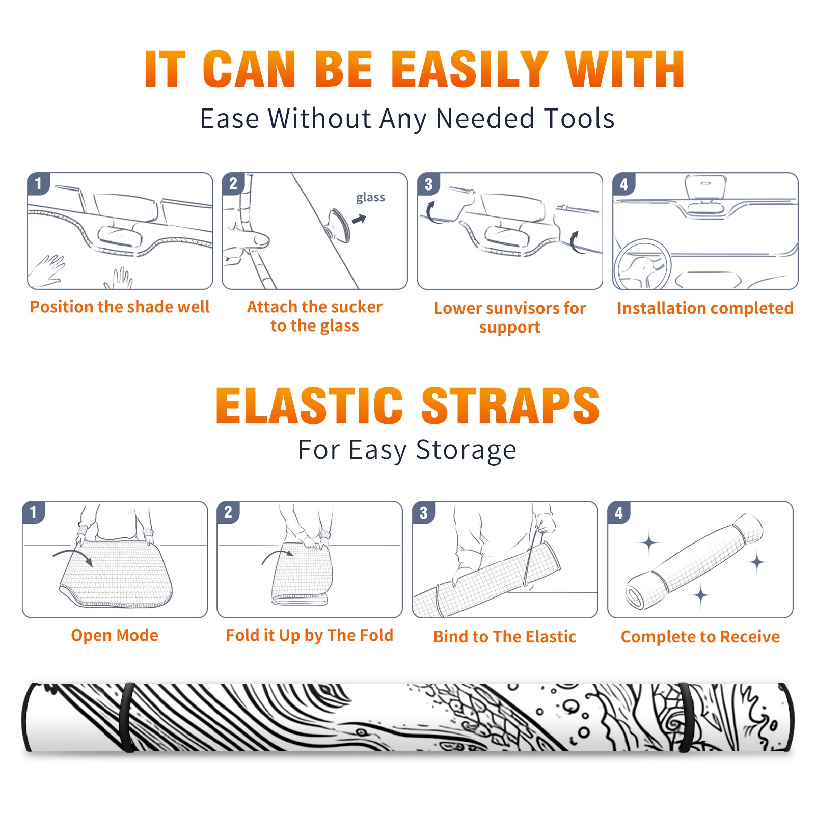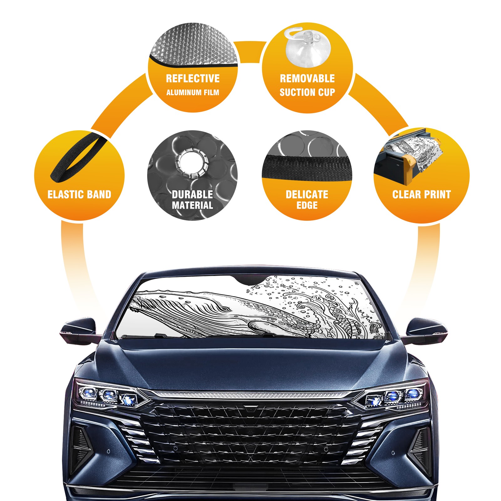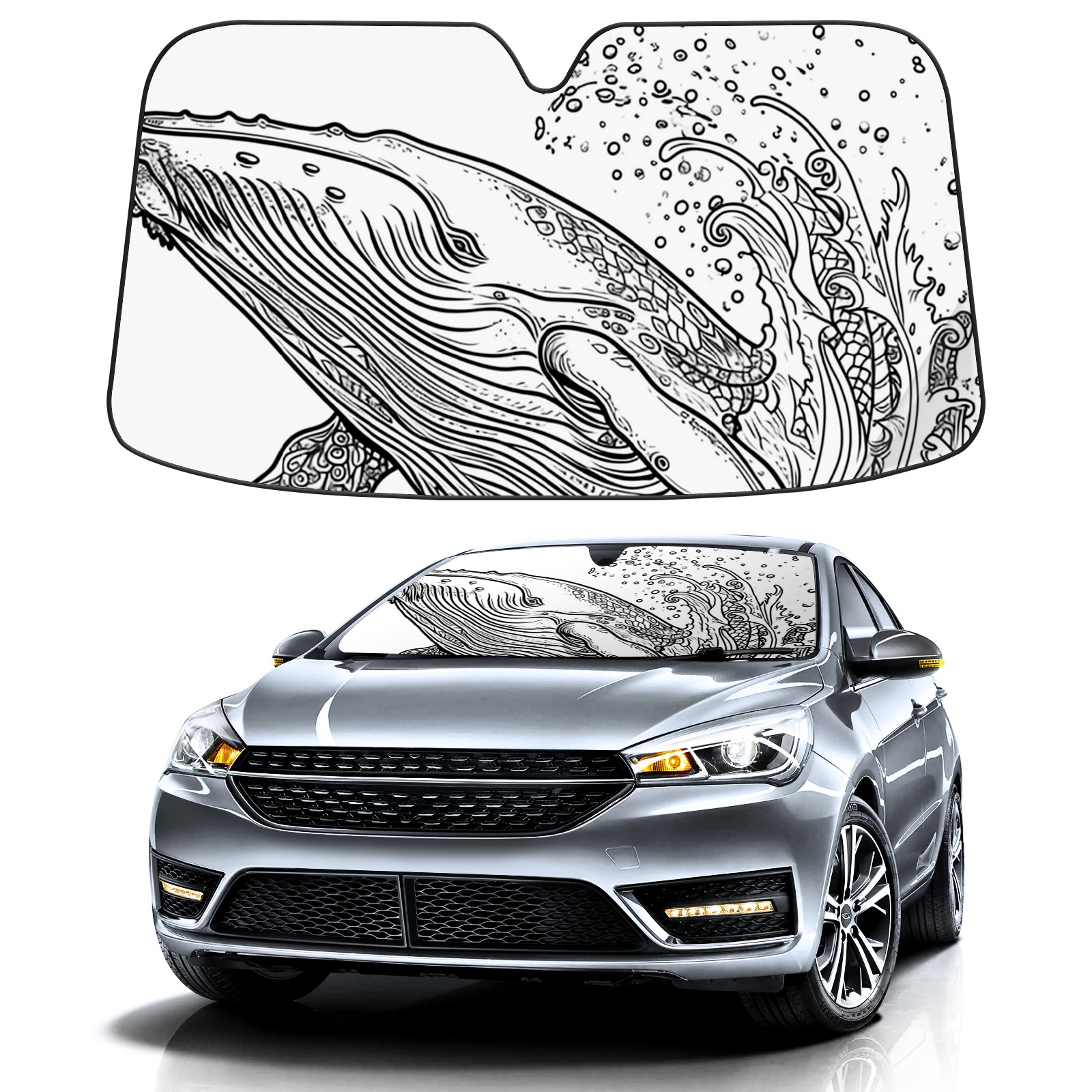 Car Windshield Sun Shade for Front Window Whale 3 Foldable Vehicle Windshield Car Sun Visor Covers Automotive Window Protector Car Privacy Sun Blocker
