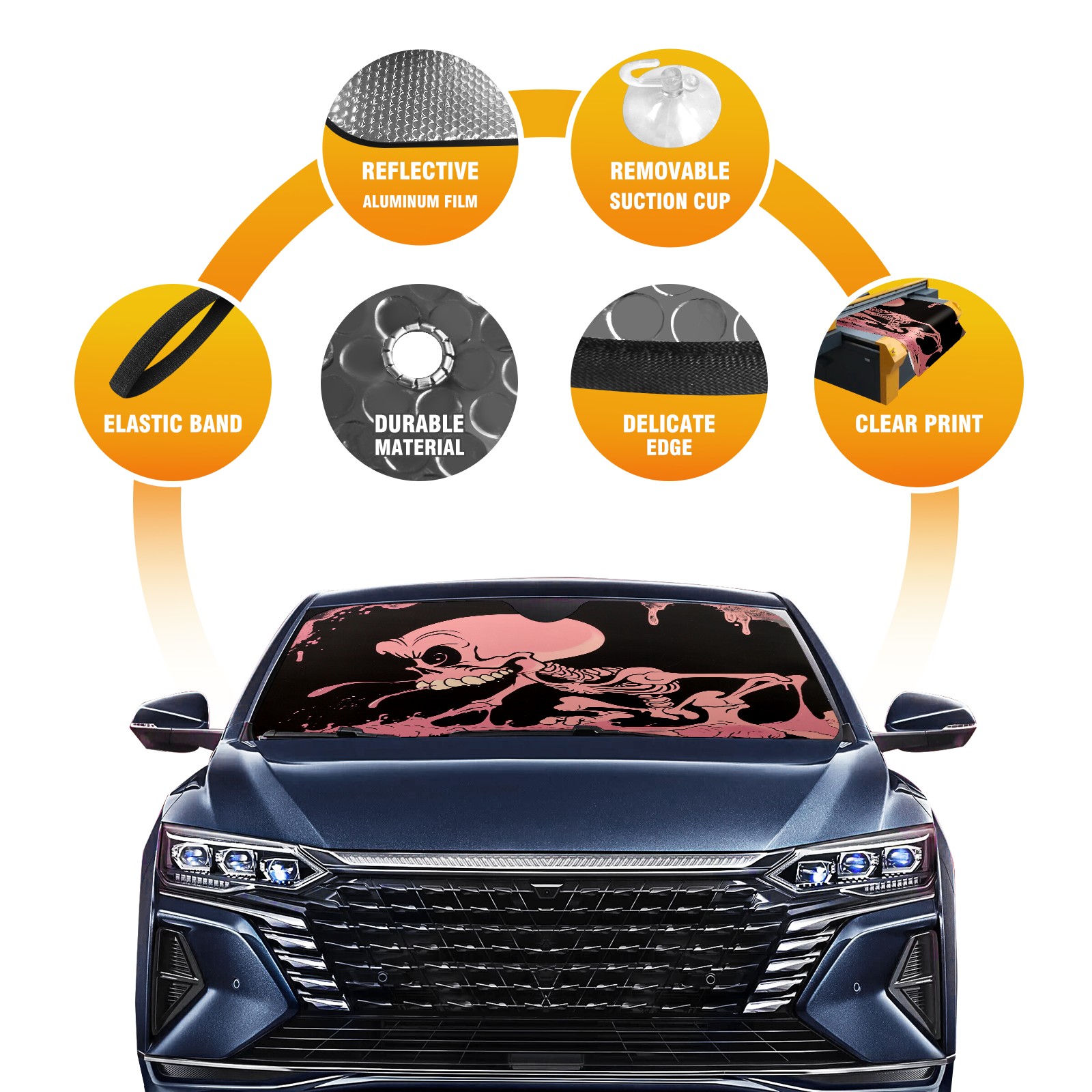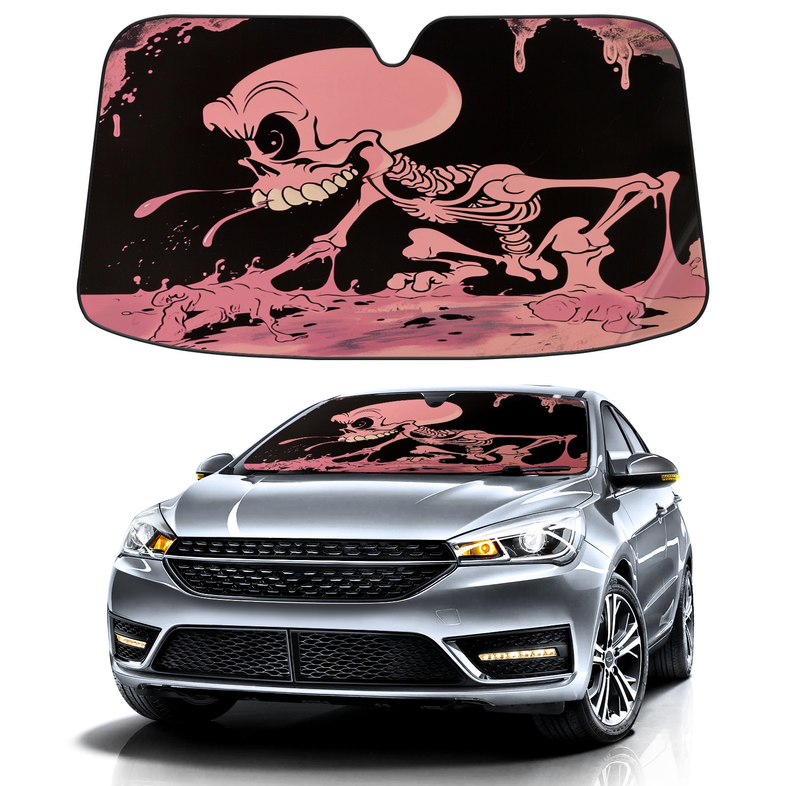 Car Windshield Sun Shade for Front Window Pink Death 1 Foldable Vehicle Windshield Car Sun Visor Covers Automotive Window Protector Car Privacy Sun Blocker