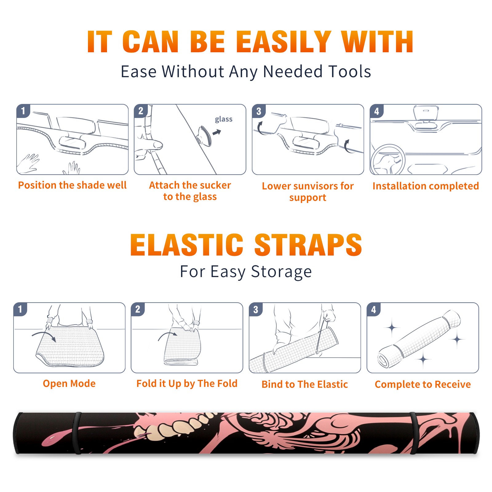 • </b>ZXIVGOQFR Foldable Premium Car Windshield Sunshade is your great solution to reduce your car’s interior temperature dramatically! This is definitely a must-have item for your summer travel! </b> <br> </b>Size: 63"L x 33.5"W </b> <br> </b>Blocking Uv Rays & Heat Insulation</b><br> Our vehicle sunshade provides effective UV, sun, and summer heat protection .Maintains dashboards by preventing fading and cracking <br> </b>Easy-To-Store Folding Design Makes Storage Convenient </b><br> ZXIVGOQFR car sunshades come with removable suction cups and elastic bands that you can install easily and quickly, and the removable suction cups will not leave any marks on your windows when removed. Within seconds, windshield visor can be installed and removed. When not in use,the front windshield can be easily and effectively placed on the door pocket or the dashboard, which is beautiful and does not take up space in the car.<br> <br> </b>PUT UP A 'PROTECTIVE UMBRELLA' FOR YOUR BELOVED CAR!</b>