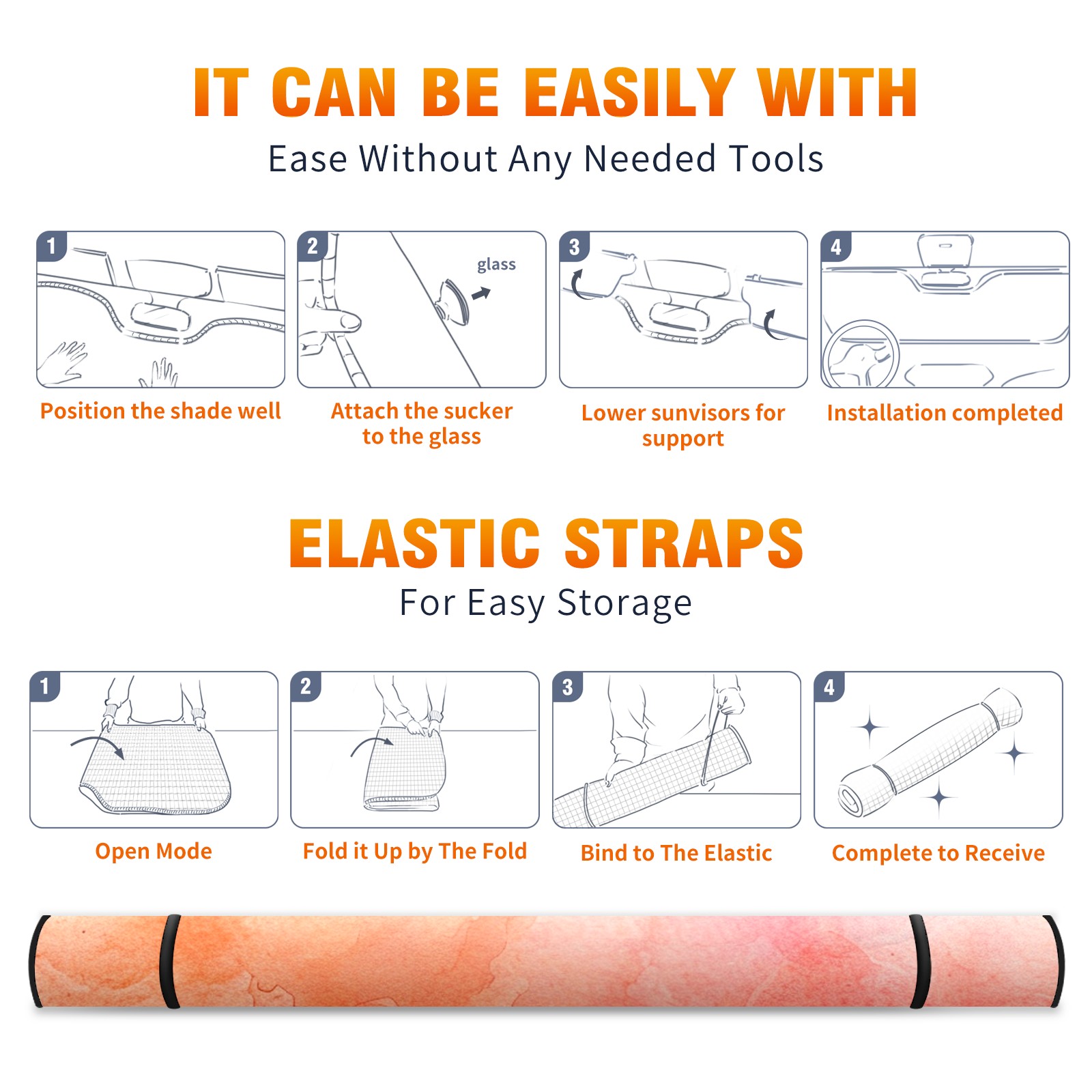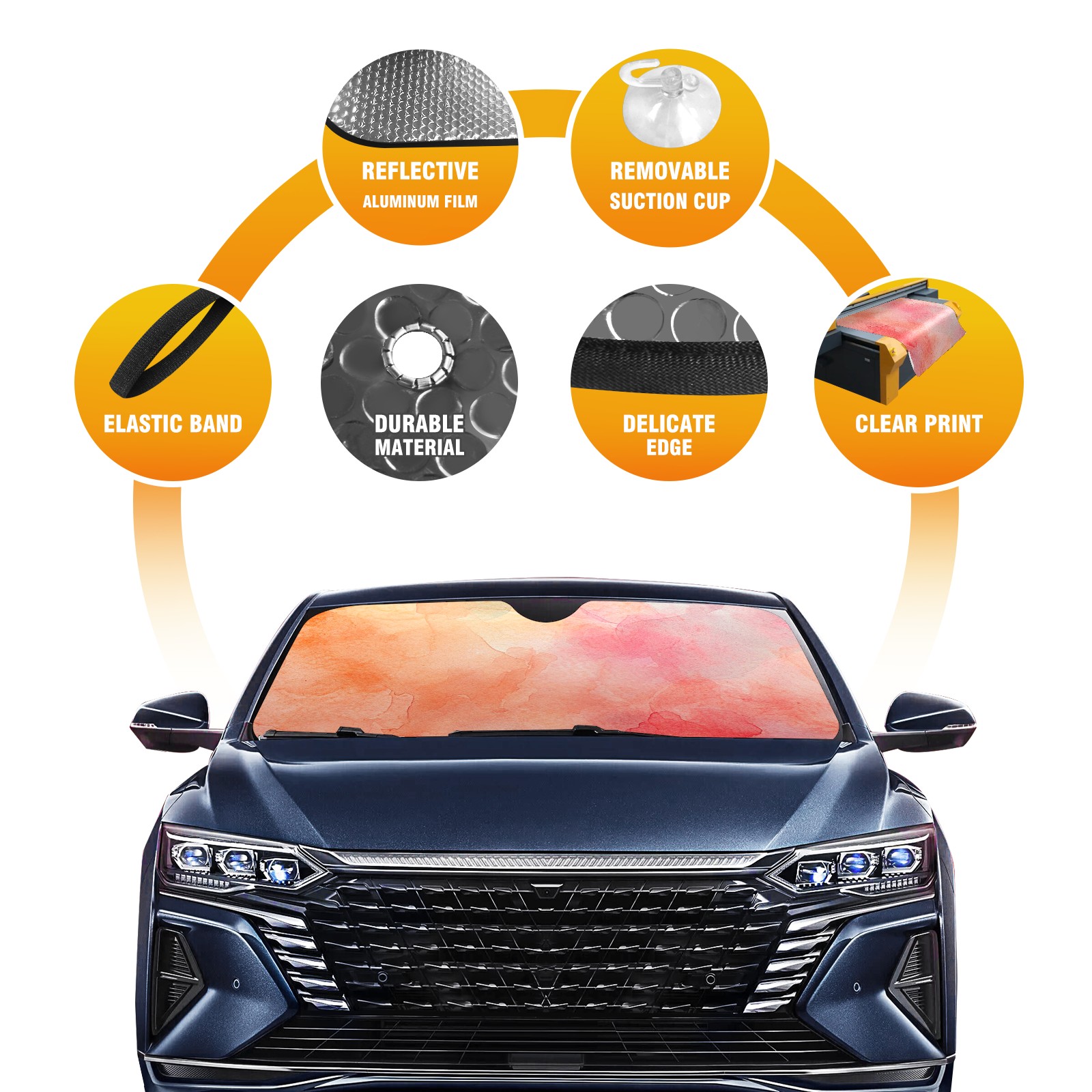 Car Windshield Sun Shade for Front Window Peach 8 Foldable Vehicle Windshield Car Sun Visor Covers Automotive Window Protector Car Privacy Sun Blocker