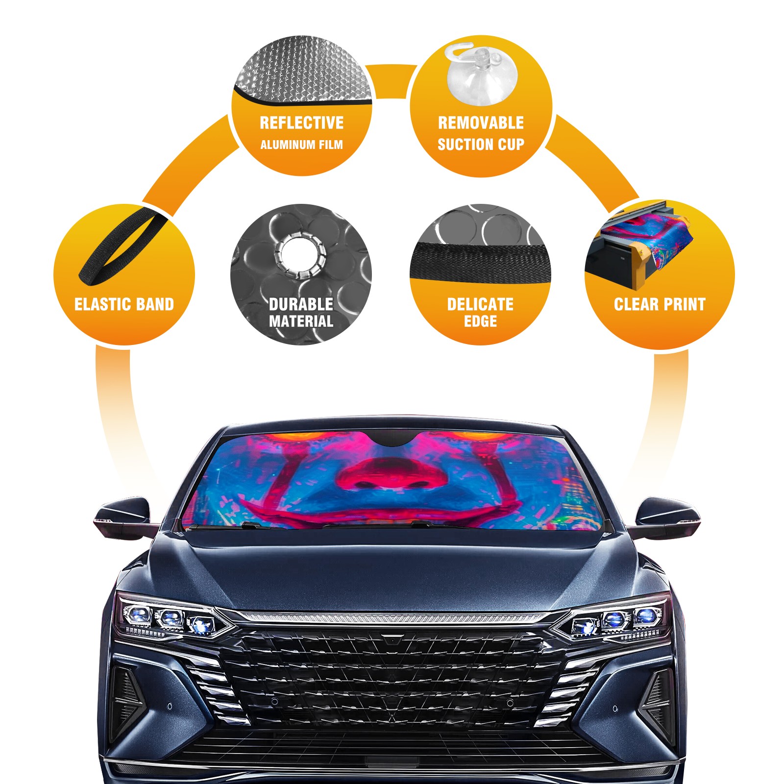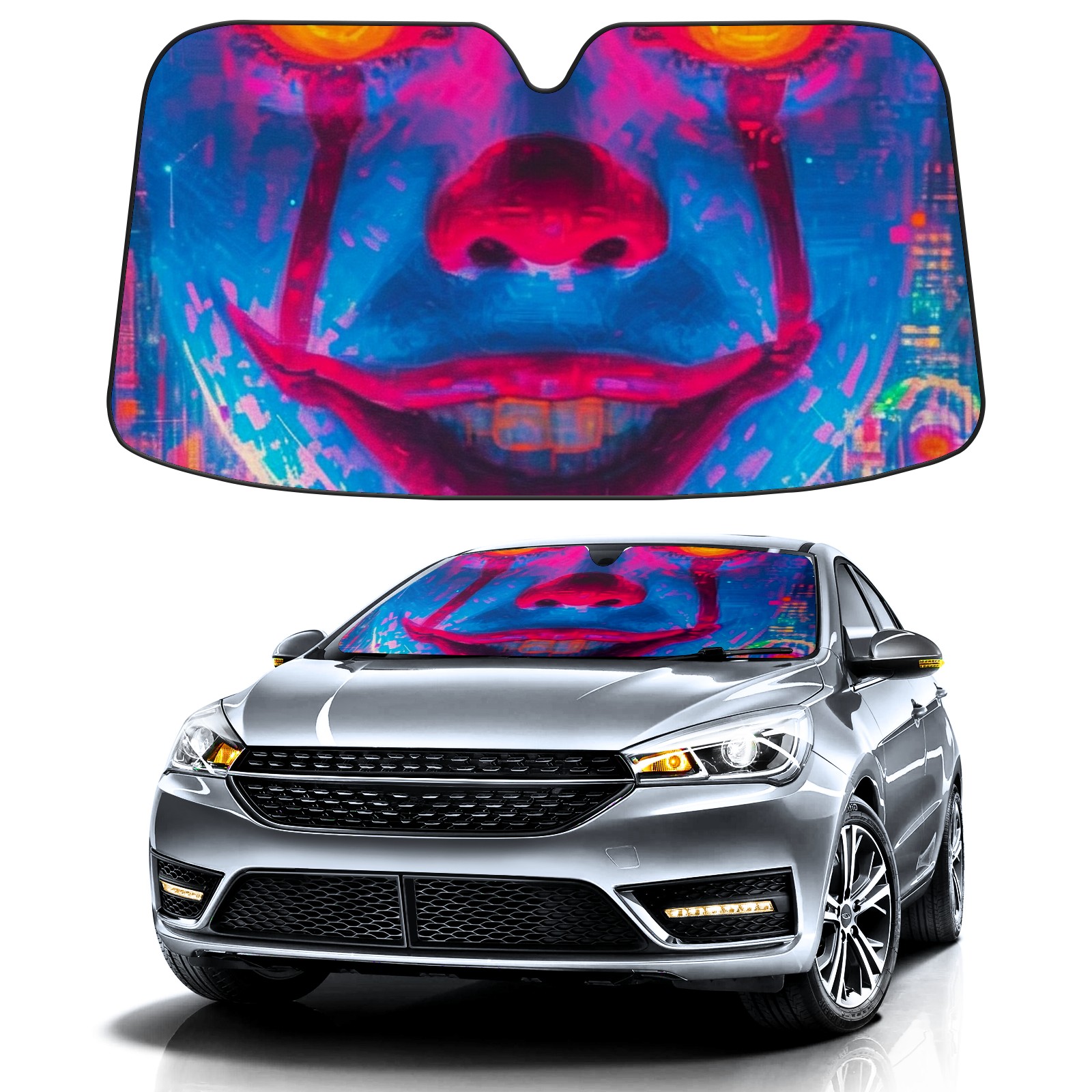 Car Windshield Sun Shade for Front Window Neon-lit Rings 2 Foldable Vehicle Windshield Car Sun Visor Covers Automotive Window Protector Car Privacy Sun Blocker