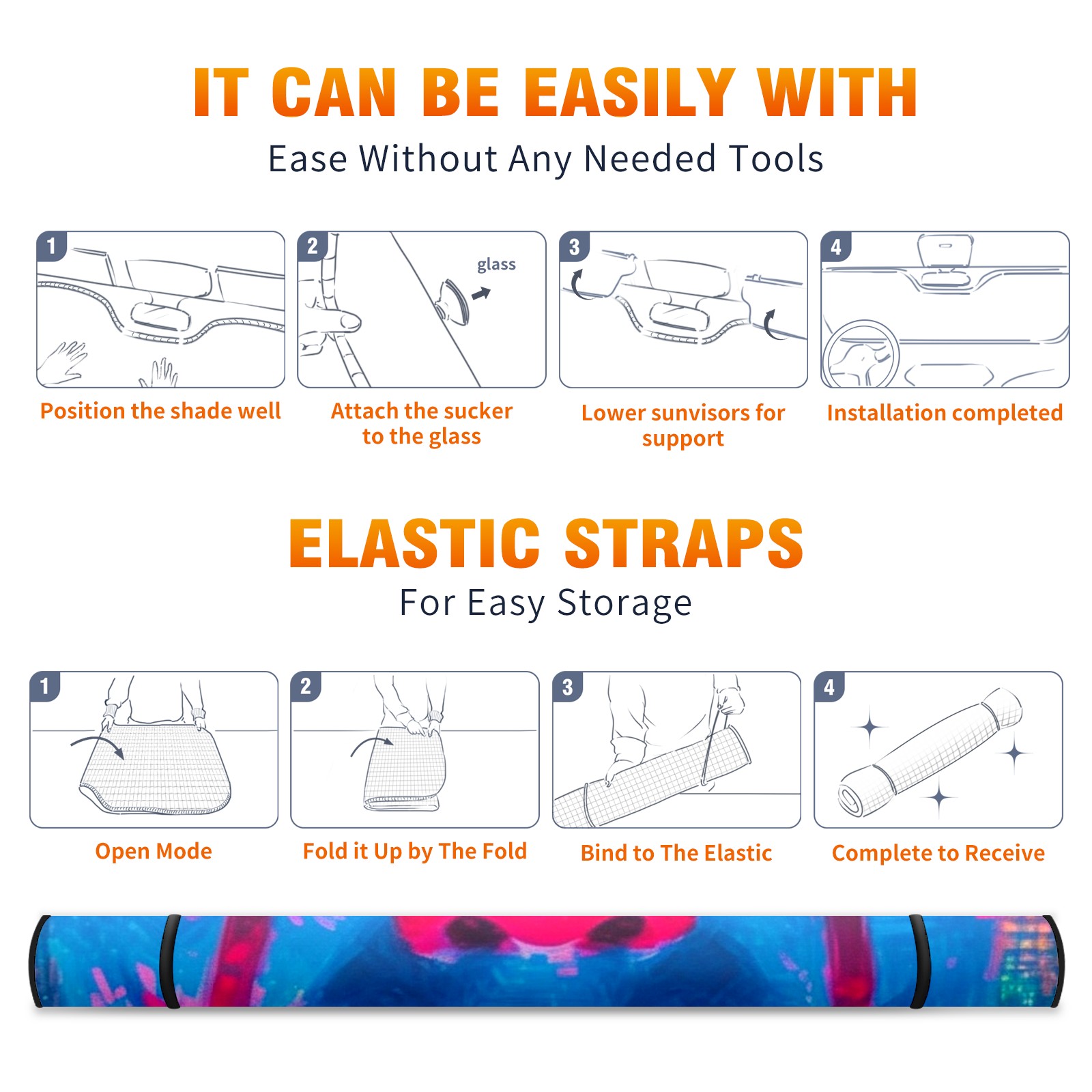 • </b>ZXIVGOQFR Foldable Premium Car Windshield Sunshade is your great solution to reduce your car’s interior temperature dramatically! This is definitely a must-have item for your summer travel! </b> <br> </b>Size: 63"L x 33.5"W </b> <br> </b>Blocking Uv Rays & Heat Insulation</b><br> Our vehicle sunshade provides effective UV, sun, and summer heat protection .Maintains dashboards by preventing fading and cracking <br> </b>Easy-To-Store Folding Design Makes Storage Convenient </b><br> ZXIVGOQFR car sunshades come with removable suction cups and elastic bands that you can install easily and quickly, and the removable suction cups will not leave any marks on your windows when removed. Within seconds, windshield visor can be installed and removed. When not in use,the front windshield can be easily and effectively placed on the door pocket or the dashboard, which is beautiful and does not take up space in the car.<br> <br> </b>PUT UP A 'PROTECTIVE UMBRELLA' FOR YOUR BELOVED CAR!</b>