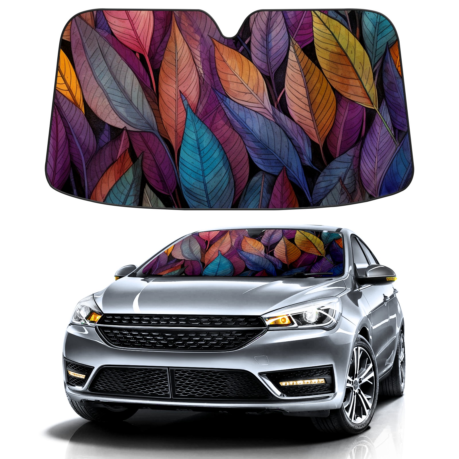 Car Windshield Sun Shade for Front Window Leaves 10 Foldable Vehicle Windshield Car Sun Visor Covers Automotive Window Protector Car Privacy Sun Blocker