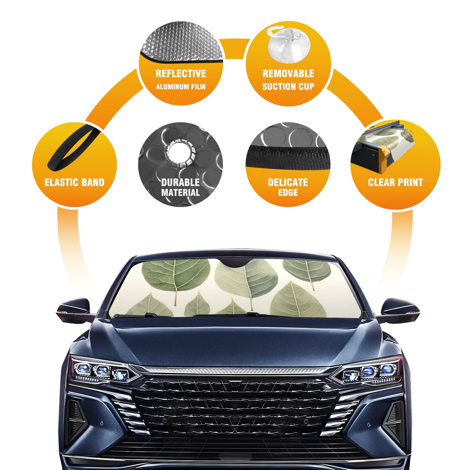 Car Windshield Sun Shade for Front Window Leaves 3 Foldable Vehicle Windshield Car Sun Visor Covers Automotive Window Protector Car Privacy Sun Blocker