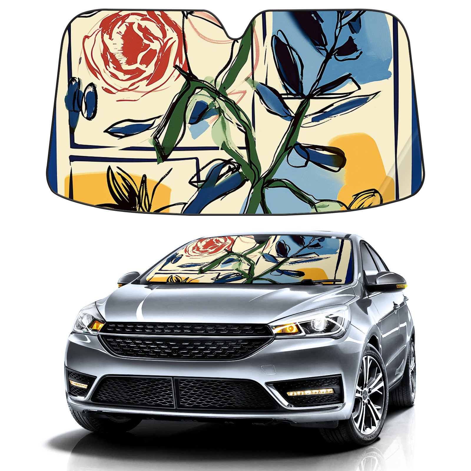 Car Windshield Sun Shade for Front Window Glass Flowers 12 Foldable Vehicle Windshield Car Sun Visor Covers Automotive Window Protector Car Privacy Sun Blocker
