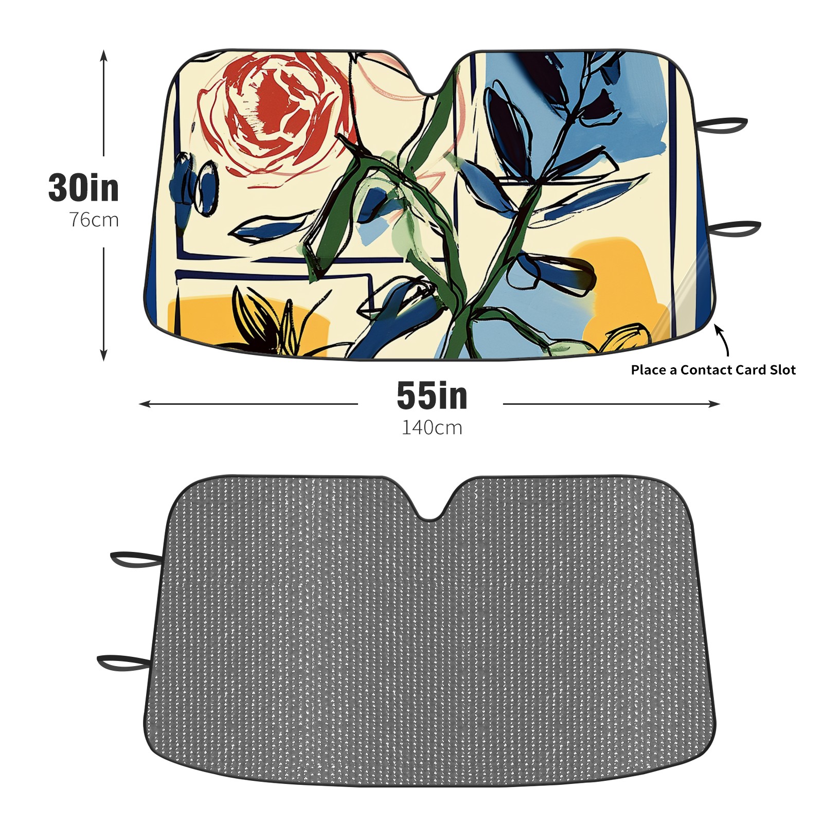 </b>ZXIVGOQFR Foldable Premium Car Windshield Sunshade is your great solution to reduce your car’s interior temperature dramatically! This is definitely a must-have item for your summer travel! </b> <br> </b>Size: 63"L x 33.5"W </b> <br> </b>Blocking Uv Rays & Heat Insulation</b><br> Our vehicle sunshade provides effective UV, sun, and summer heat protection .Maintains dashboards by preventing fading and cracking <br> </b>Easy-To-Store Folding Design Makes Storage Convenient </b><br> ZXIVGOQFR car sunshades come with removable suction cups and elastic bands that you can install easily and quickly, and the removable suction cups will not leave any marks on your windows when removed. Within seconds, windshield visor can be installed and removed. When not in use,the front windshield can be easily and effectively placed on the door pocket or the dashboard, which is beautiful and does not take up space in the car.<br> <br> </b>PUT UP A 'PROTECTIVE UMBRELLA' FOR YOUR BELOVED CAR!</b>